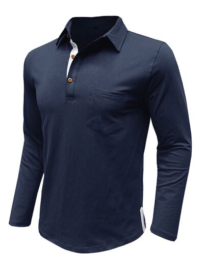 Men's Long Sleeve Polo Shirt with Chest Pocket