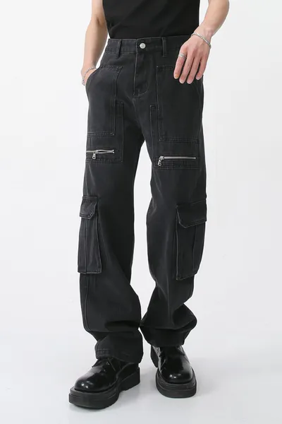 Men's Loose Fit Jeans with Cargo Pockets