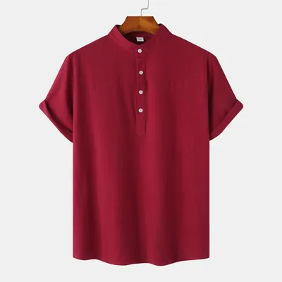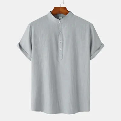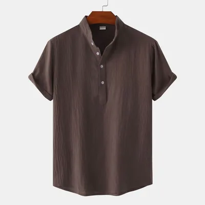 Men's Mandarin Collar Short Sleeve Henley Shirt