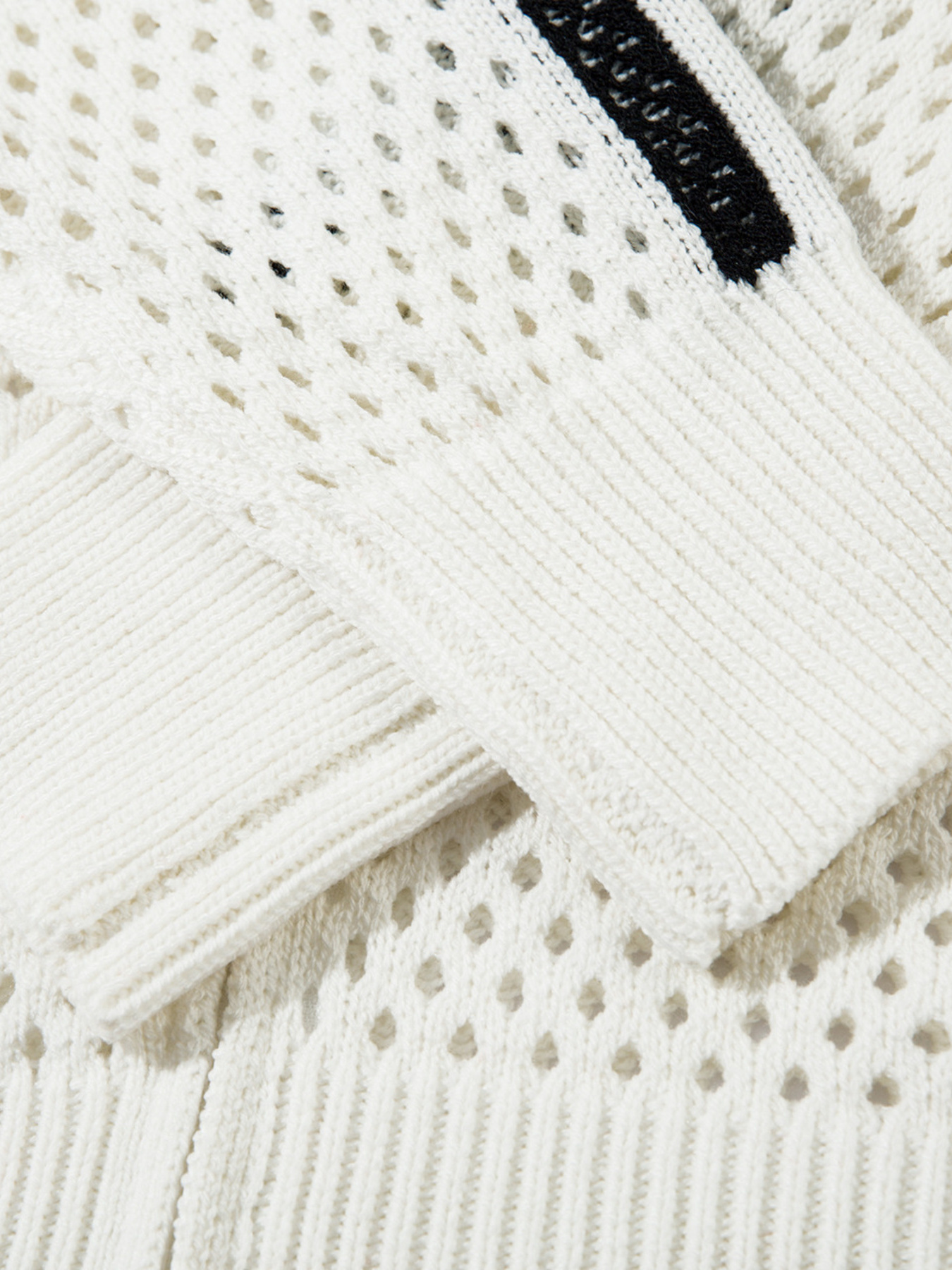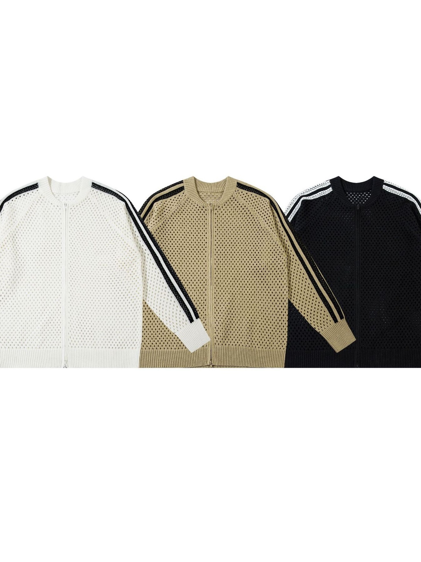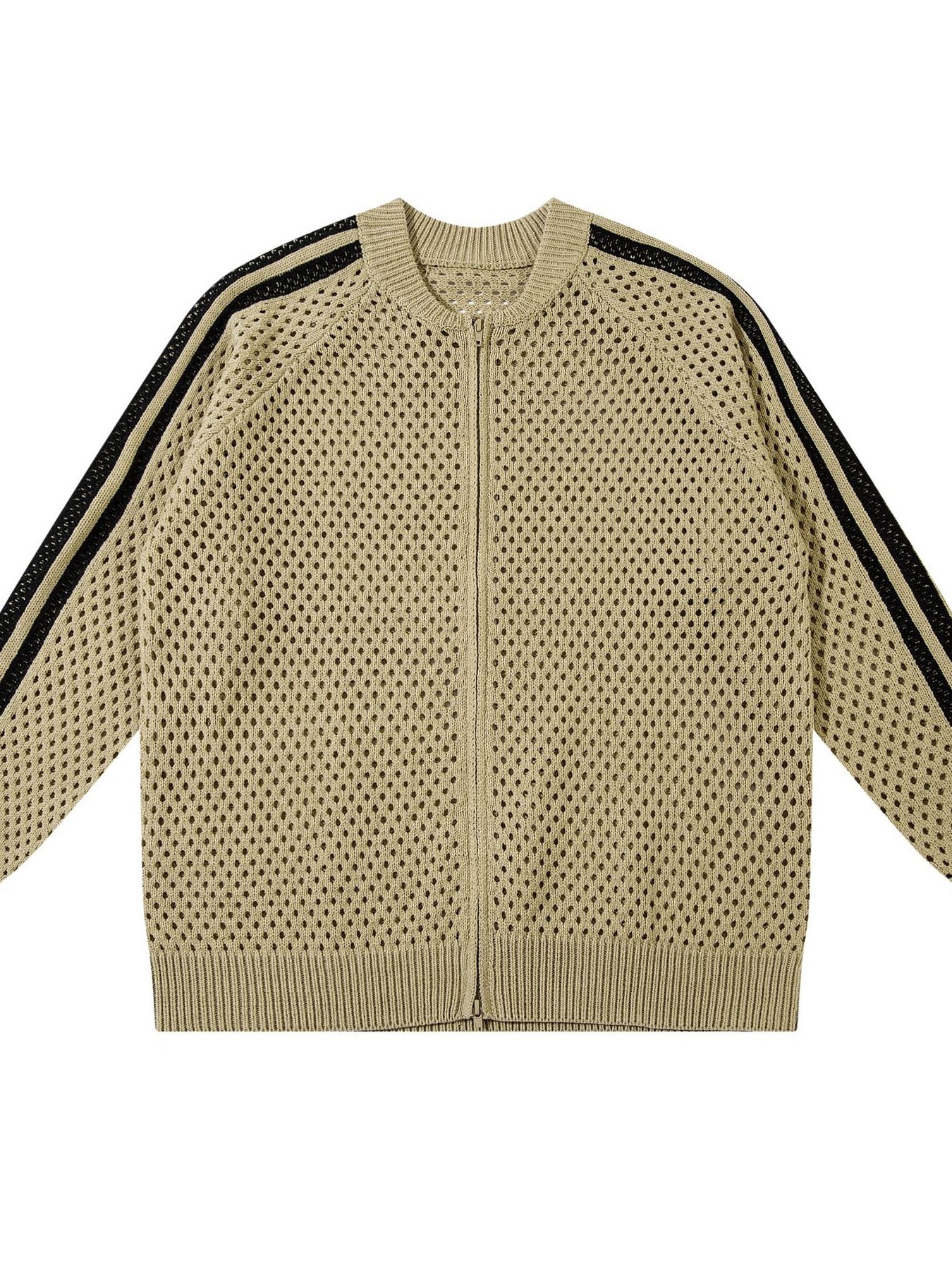 Men's Mesh Knit Zip-Up Cardigan with Stripe Detail