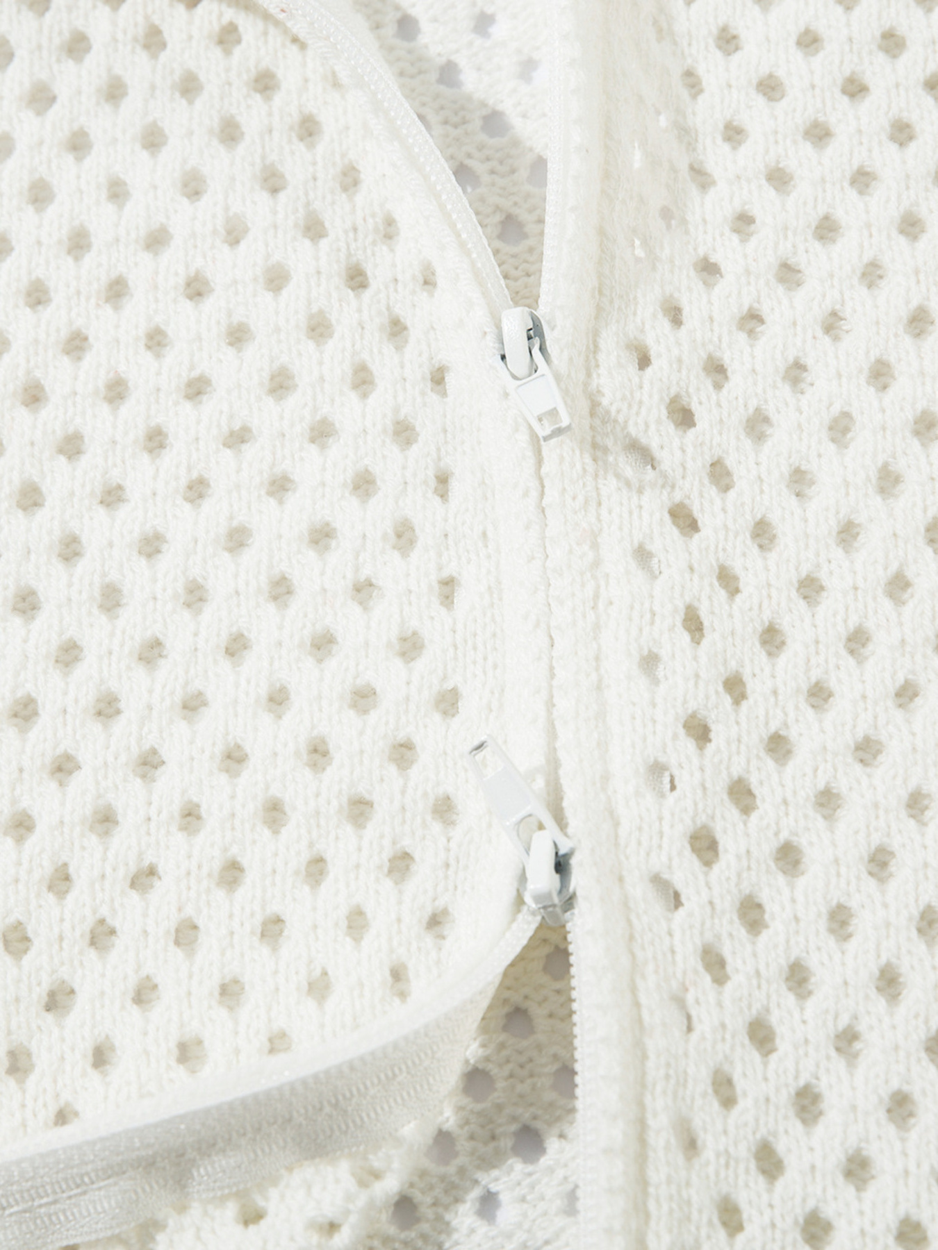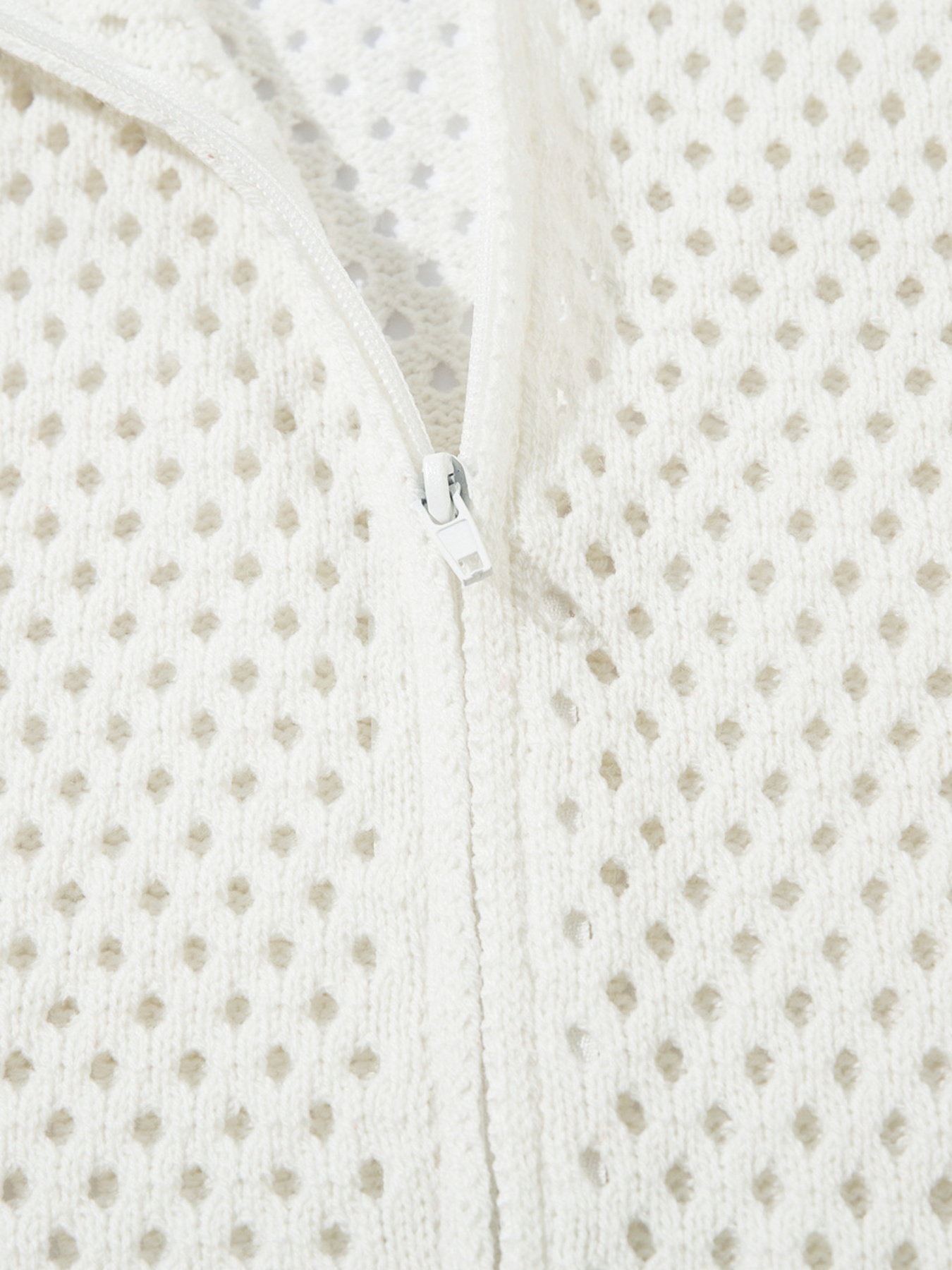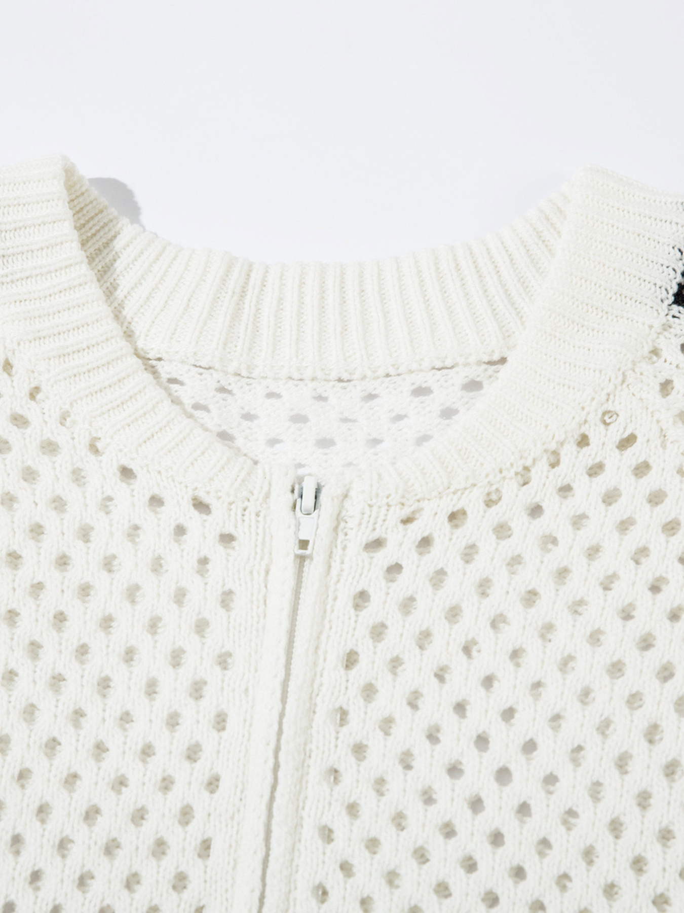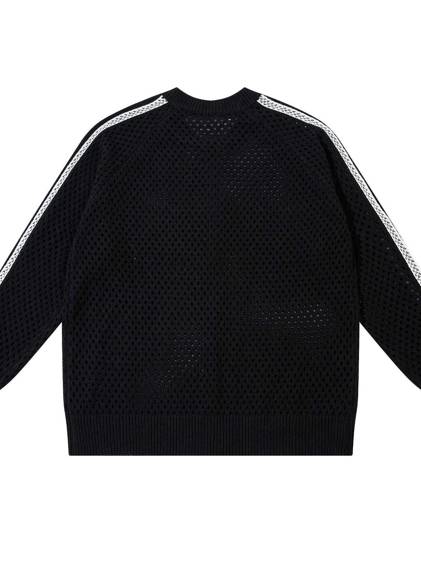 Men's Mesh Knit Zip-Up Cardigan with Stripe Detail