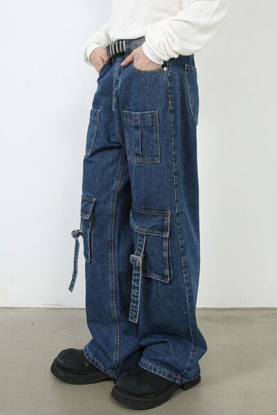 Men's Mid Rise Jeans with Cargo Pockets