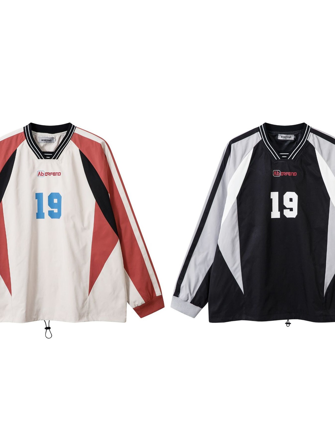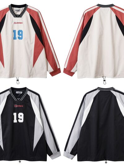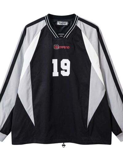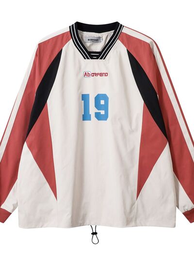Men's Number Contrast Long Sleeve Oversized Sweatshirt