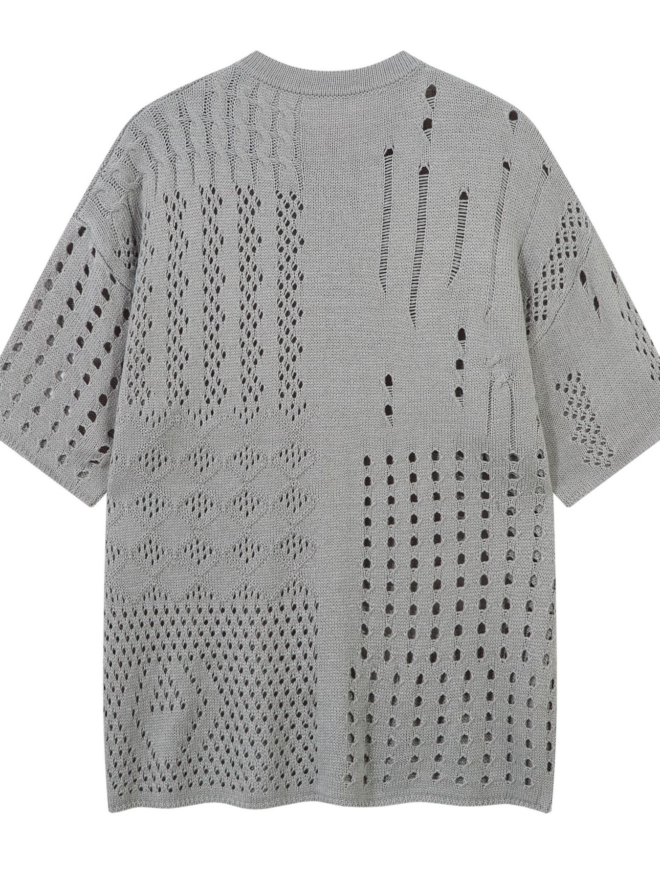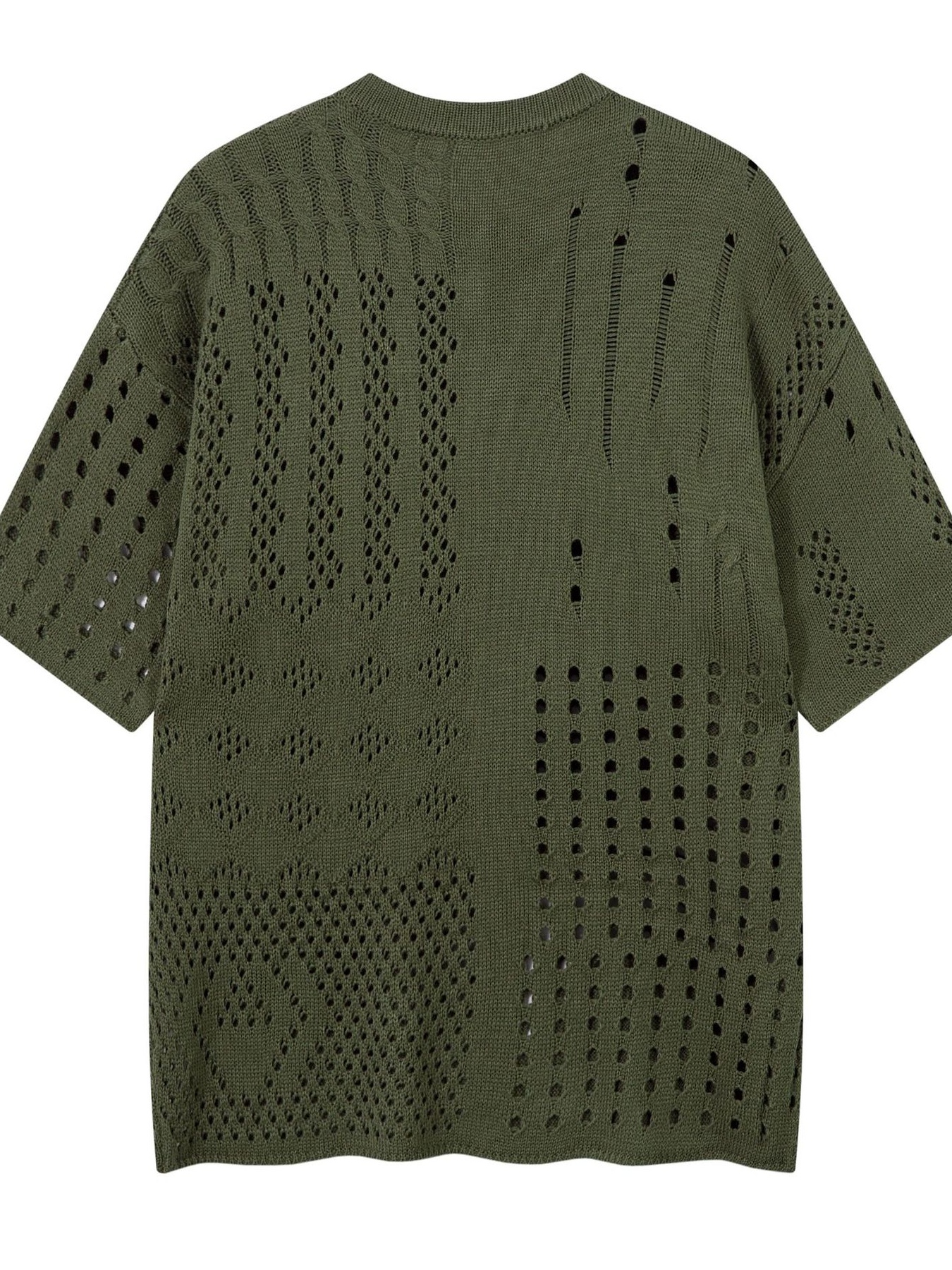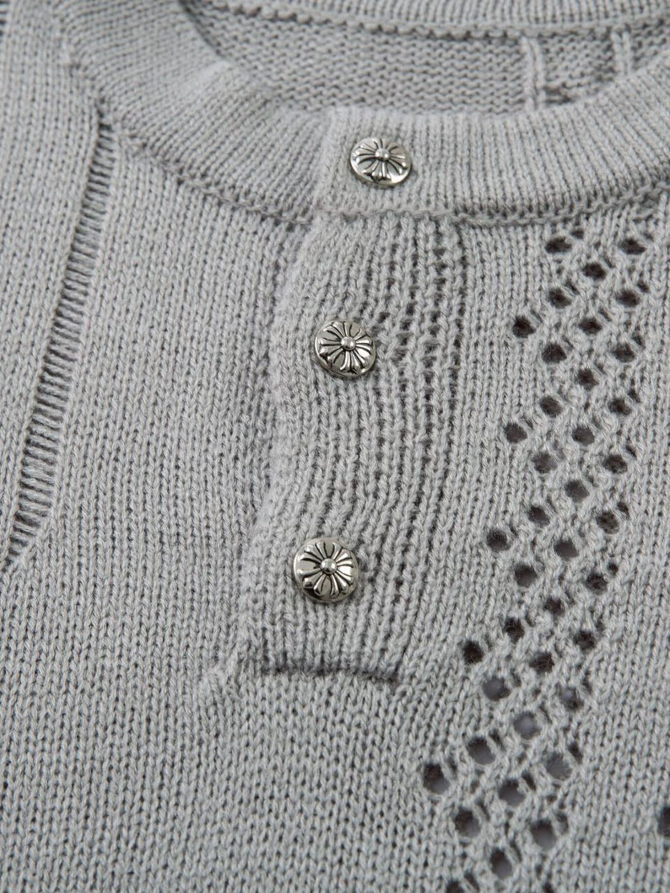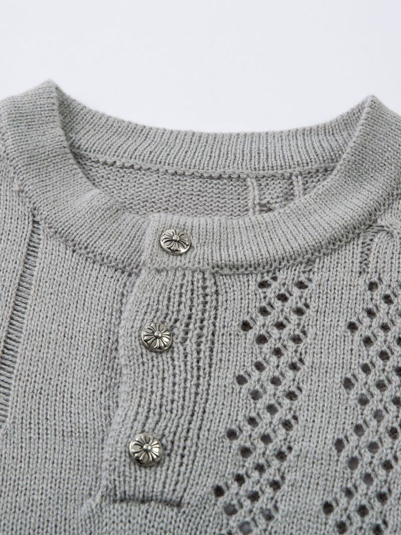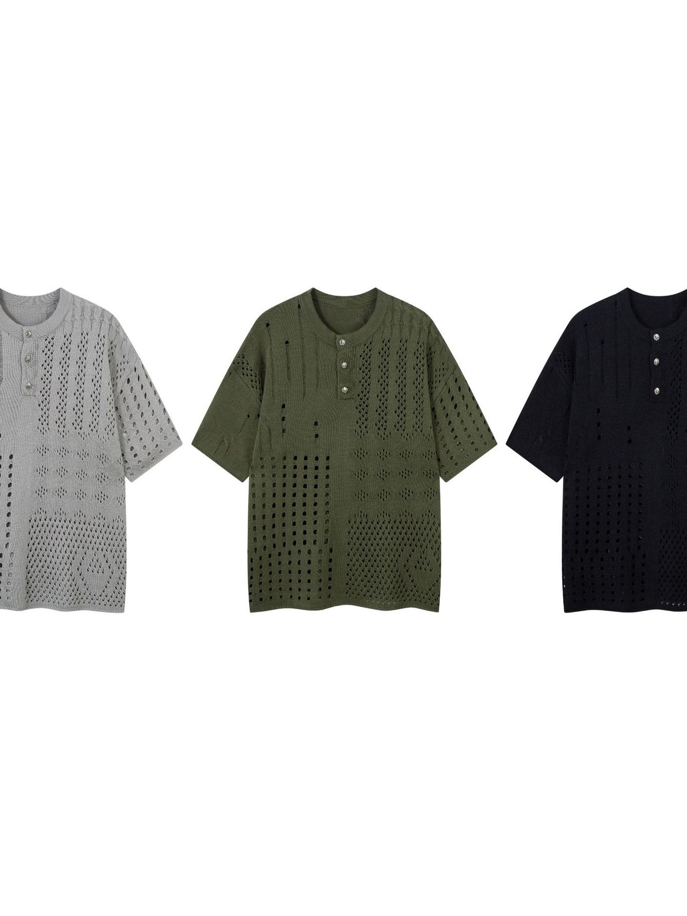 Men's Openwork Button Detail Knit Henley T-Shirt