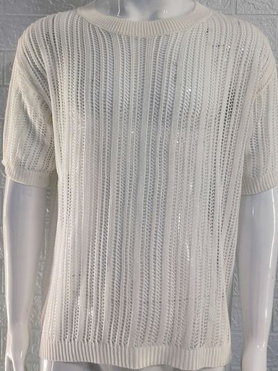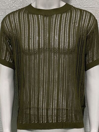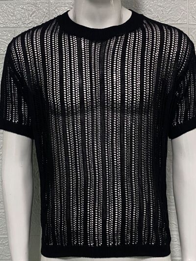 Men's Openwork Round Neck Knit T-Shirt