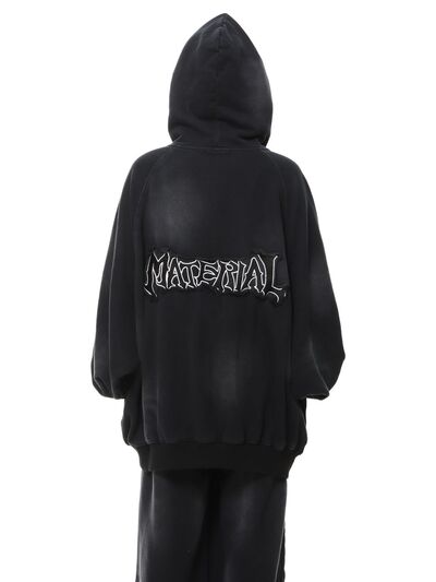 Men's Oversized Letter Graphic Zip-Up Hoodie