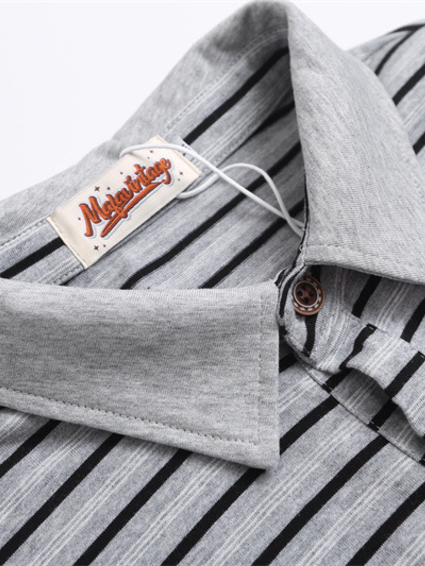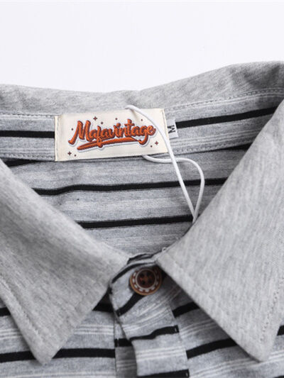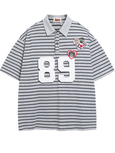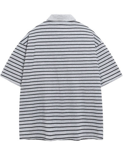 Men's Oversized Striped Short Sleeve Polo Shirt