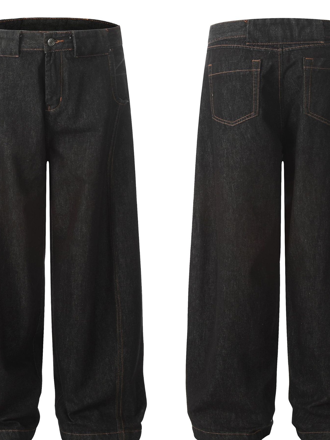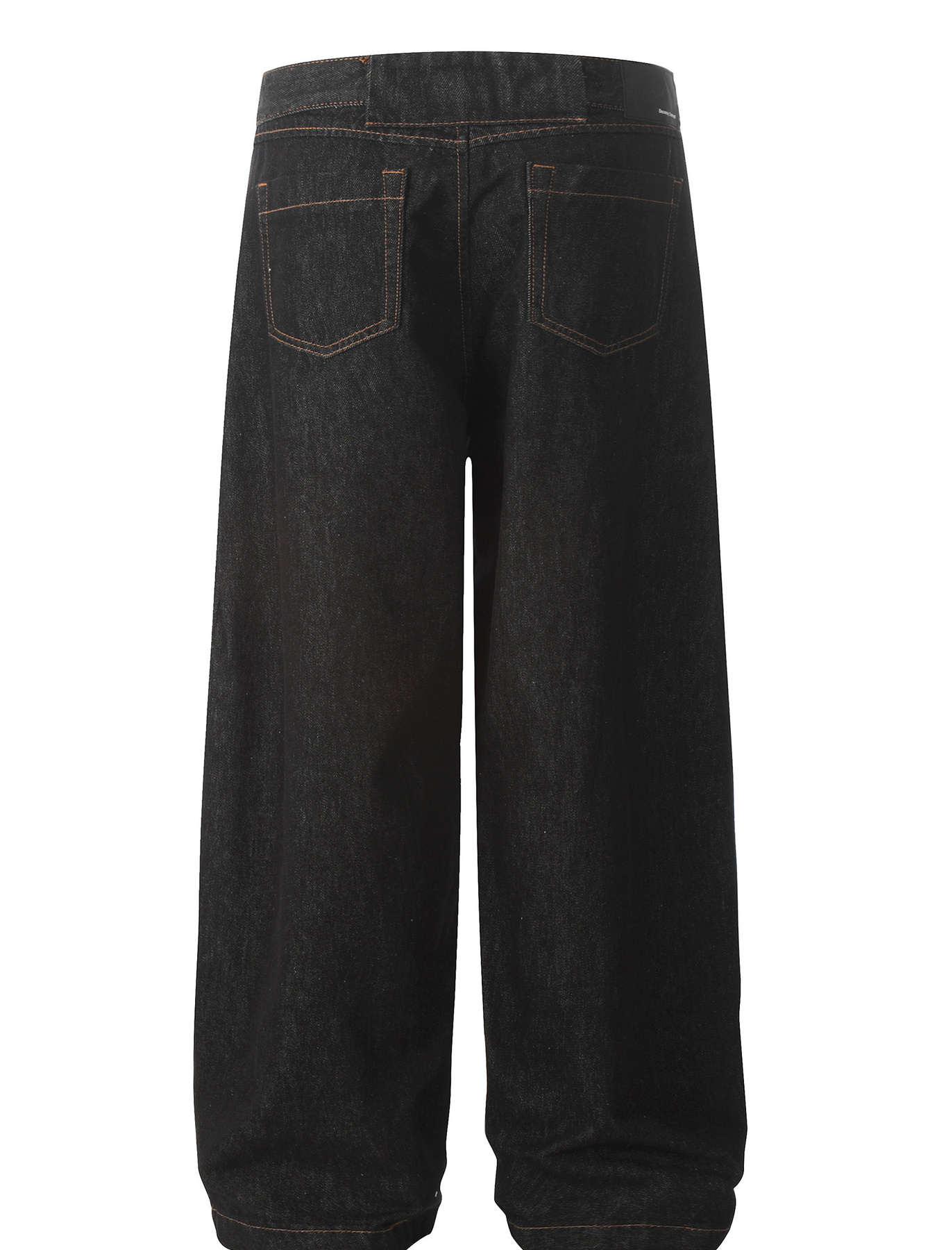 Men's Oversized Wide-Leg Wash Denim Jeans
