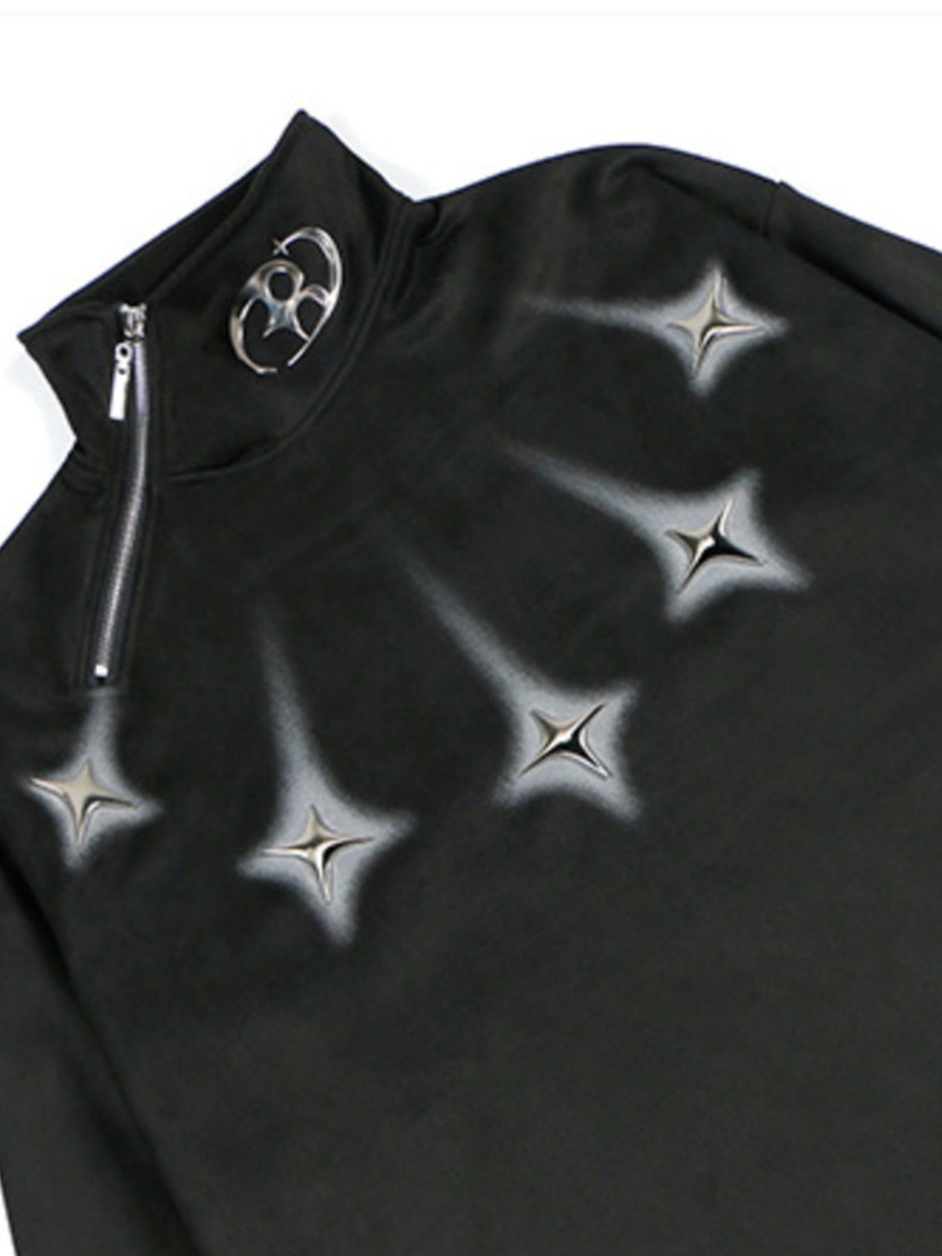 Men's Oversized Zipper Detail Turtleneck Sweatshirt