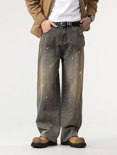 Men's Paint Splatter Wide Leg Jeans
