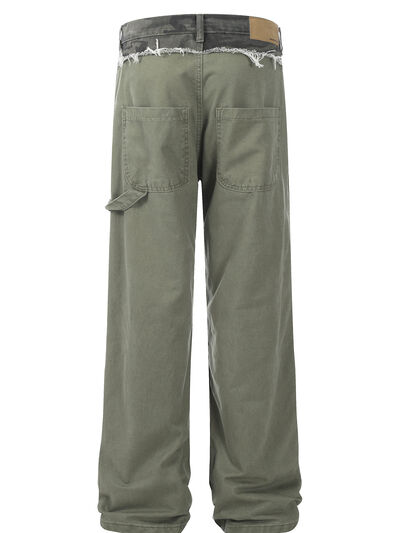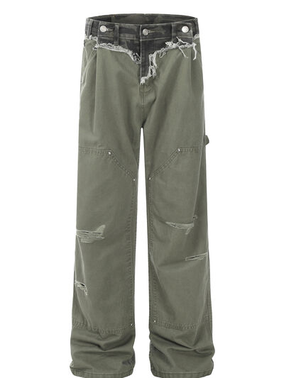 Men's Patchwork Distressed Frayed Hem Pants