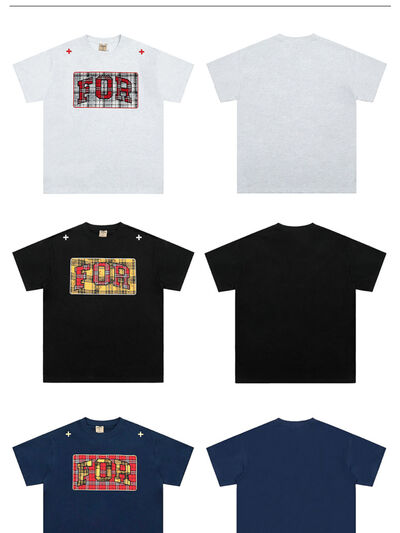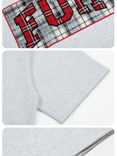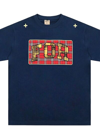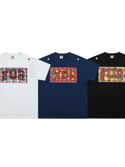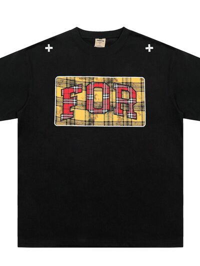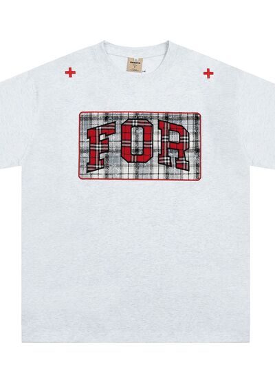 Men's Plaid Letter Round Neck T-Shirt