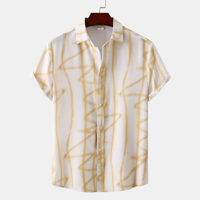 Men's Plus Size Abstract Lines Print Short Sleeve Summer Casual Shirt