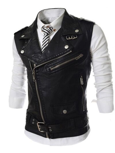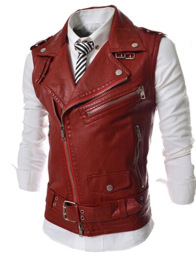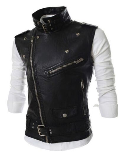Men's Plus Size Asymmetrical Zipper Adjustable Belt Buckle Vest