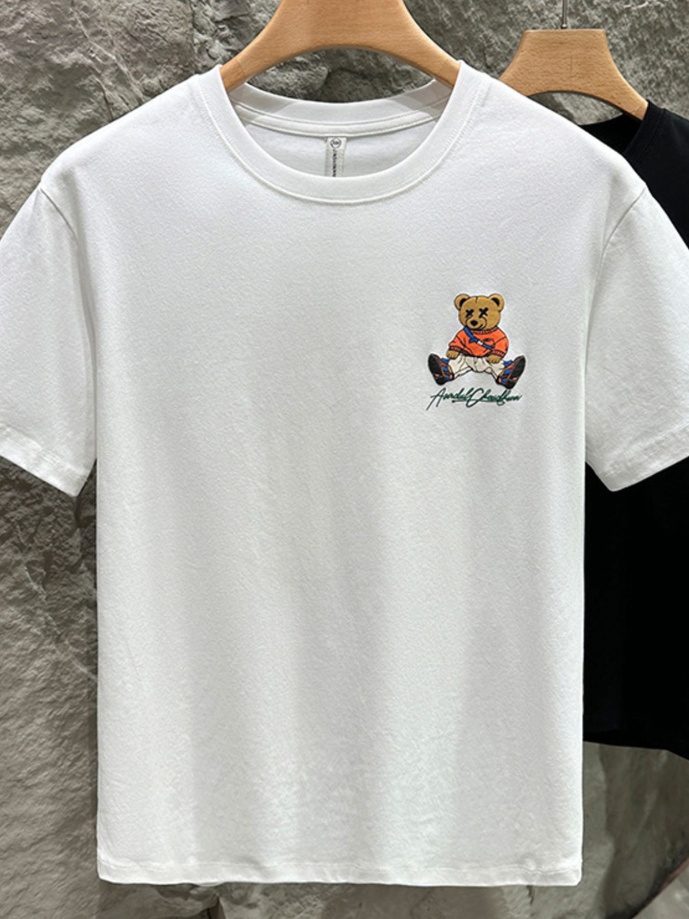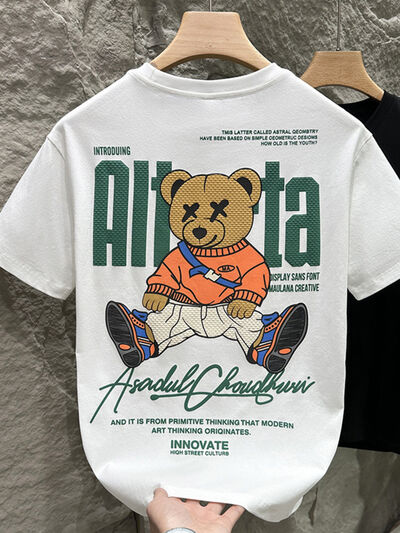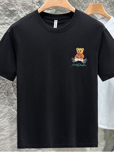 Men's Plus Size Bear Round Neck Short Sleeve T-Shirt