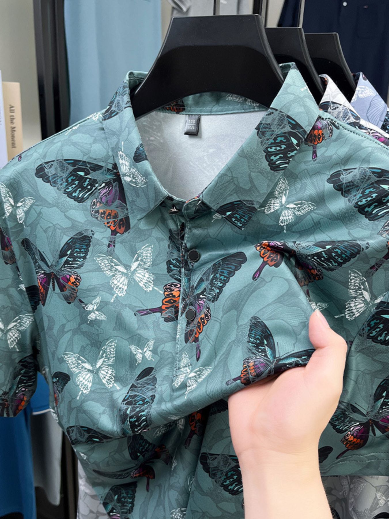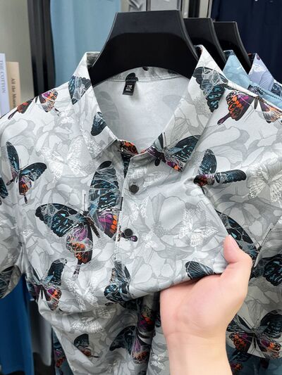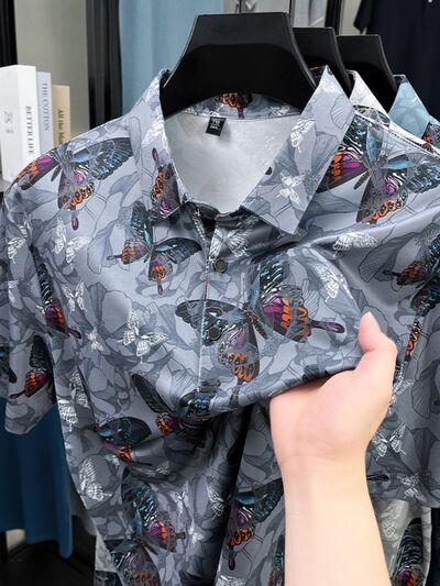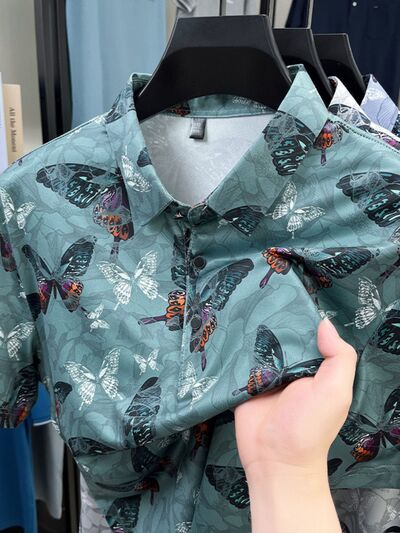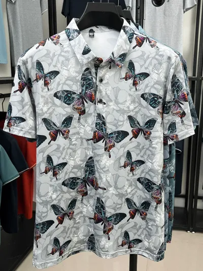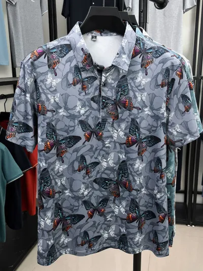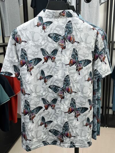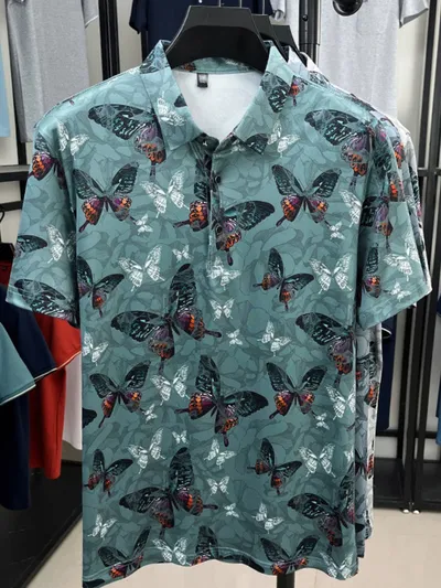 Men's Plus Size Butterfly Print Short Sleeve Polo