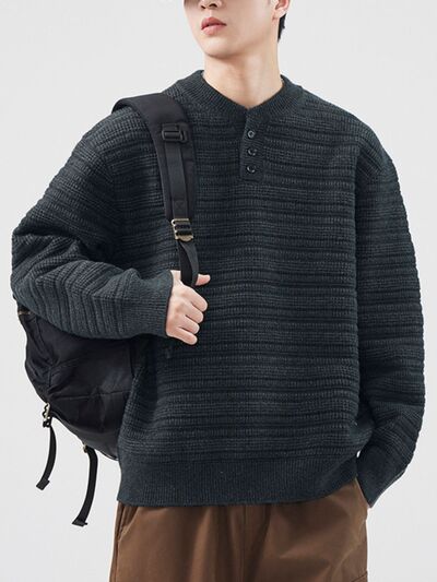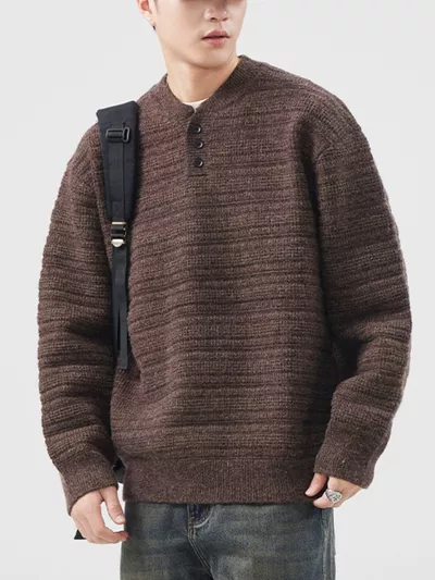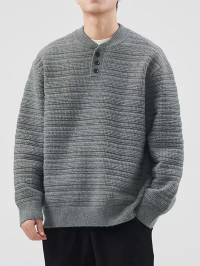 Men's Plus Size Button Detail Long Sleeve Sweater