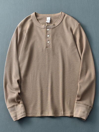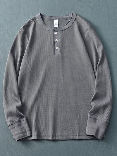 Men's Plus Size Button Detail Long Sleeve T-Shirt