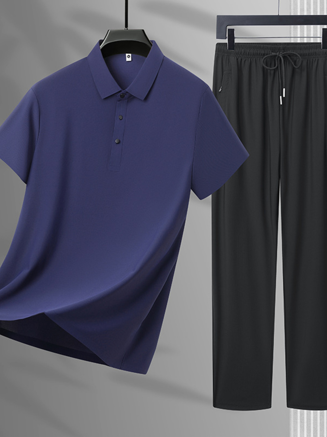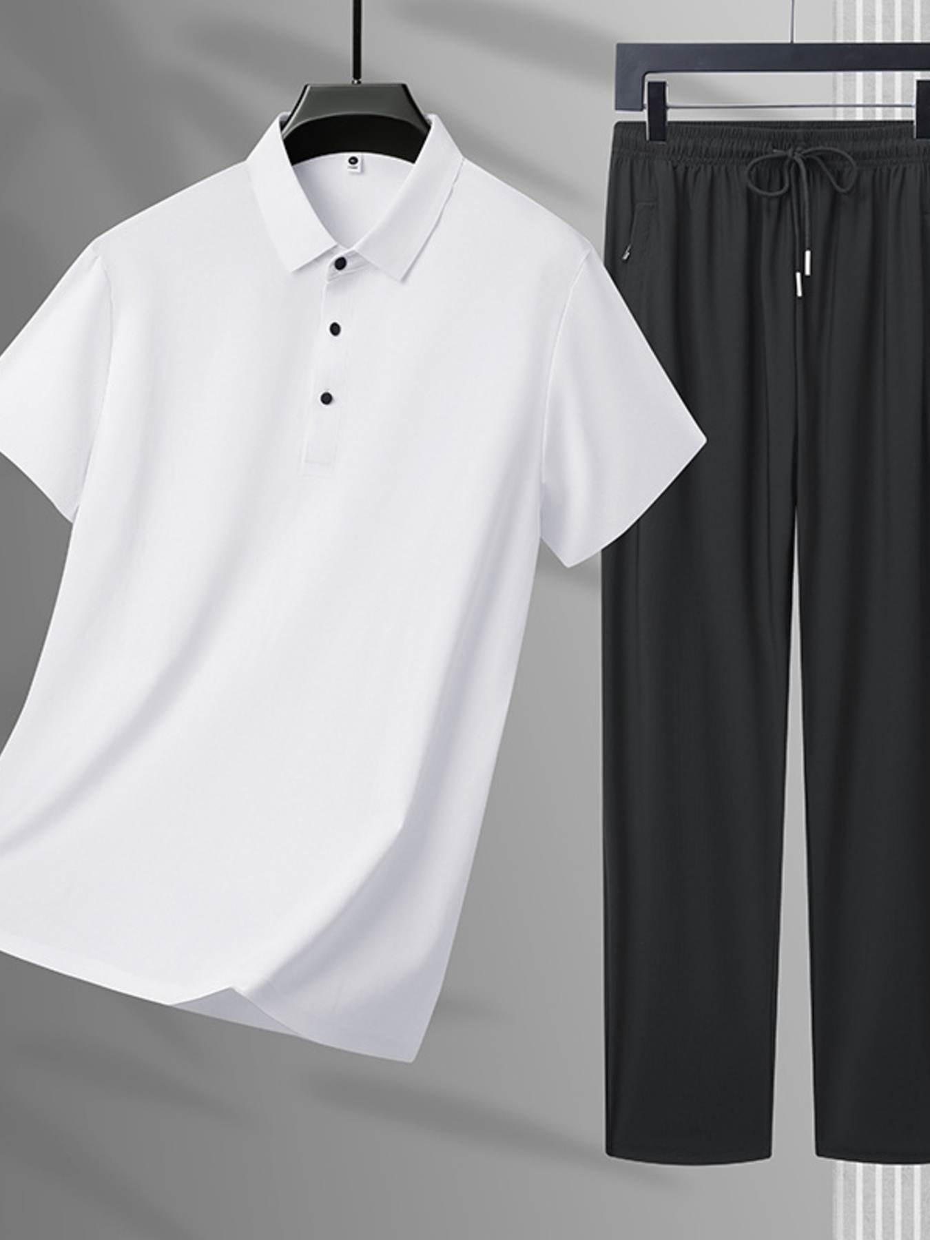 Men's Plus Size Button Detail Polo and Pants Set