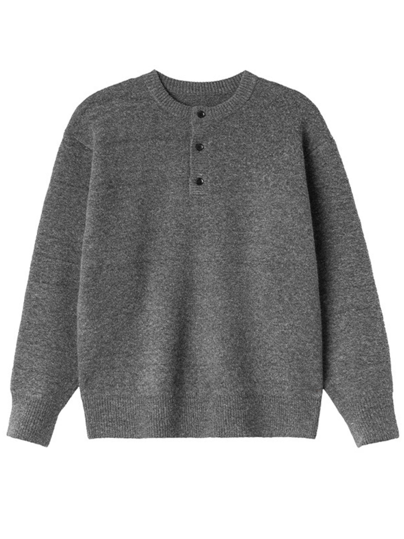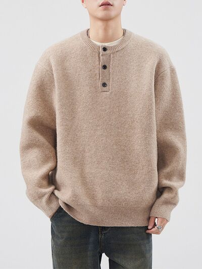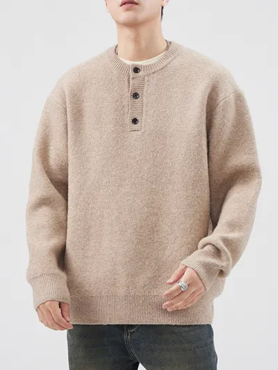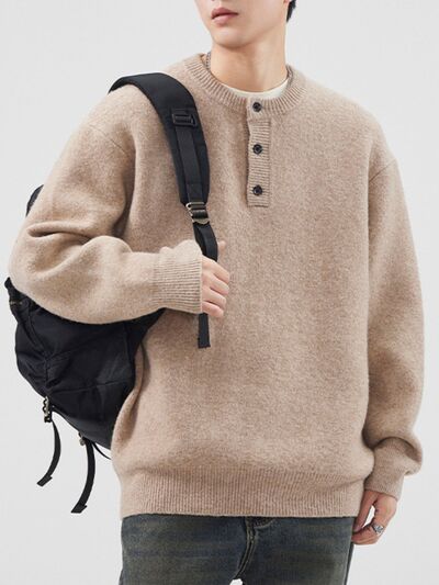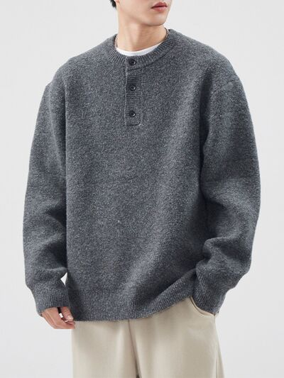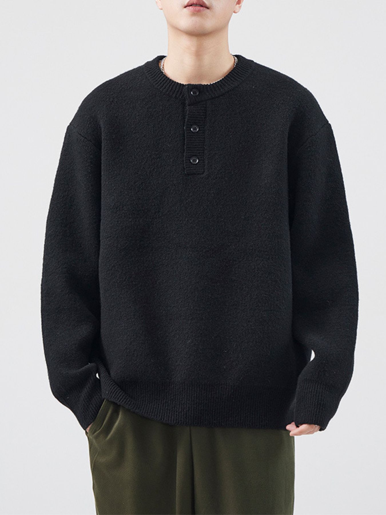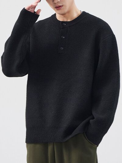 Men's Plus Size Button Detail Ribbed Hem Sweater