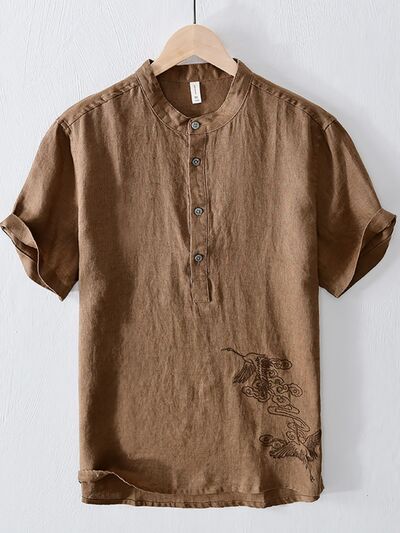 Men's Plus Size Button Detail Short Sleeve Blouse