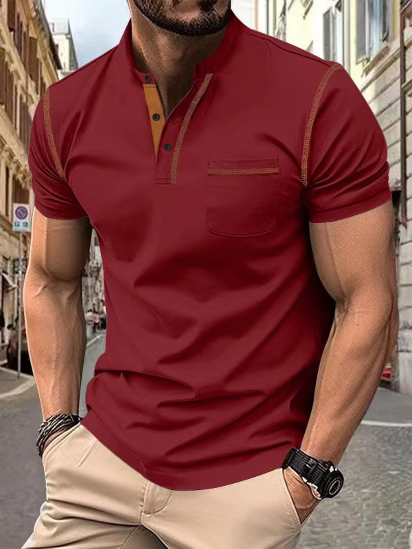 Features:Basic style,Contrast Stitching,Pocketed