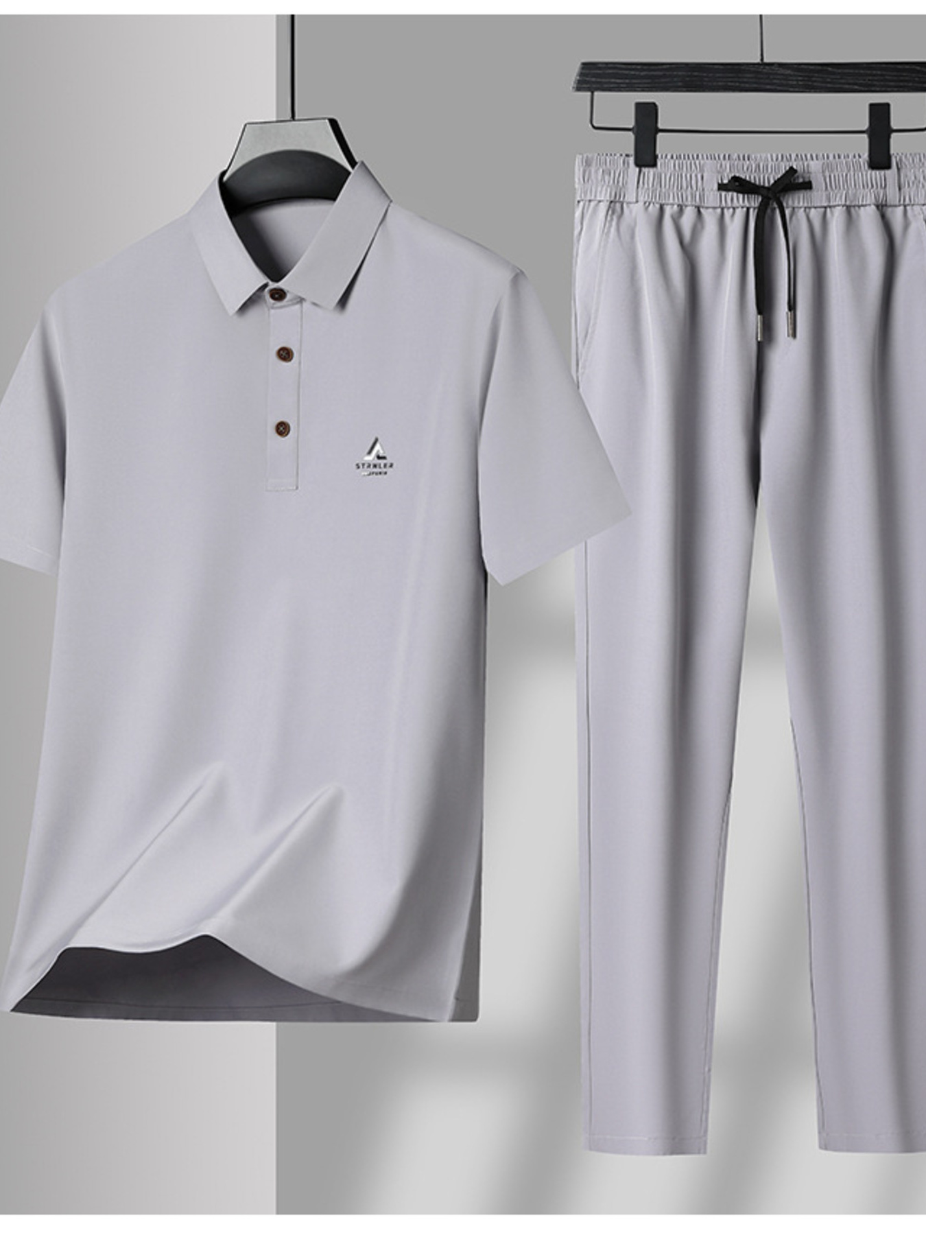 Men's Plus Size Button Detail Short Sleeve Polo and Pants Set