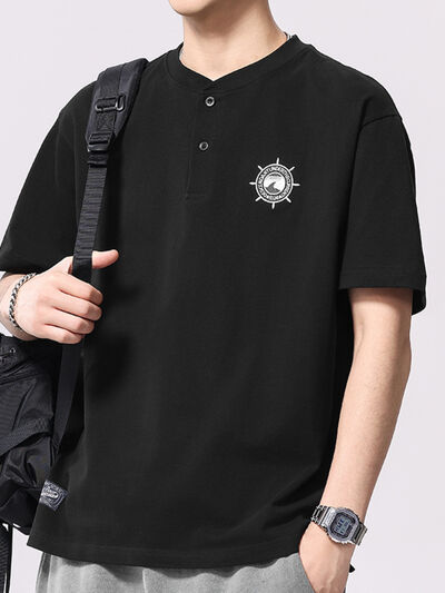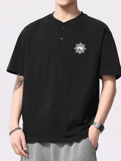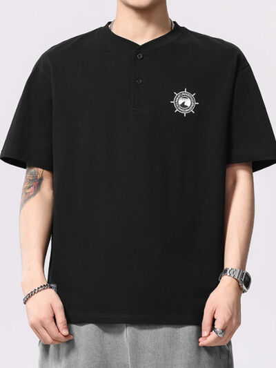 Men's Plus Size Button Detail Short Sleeve T-Shirt