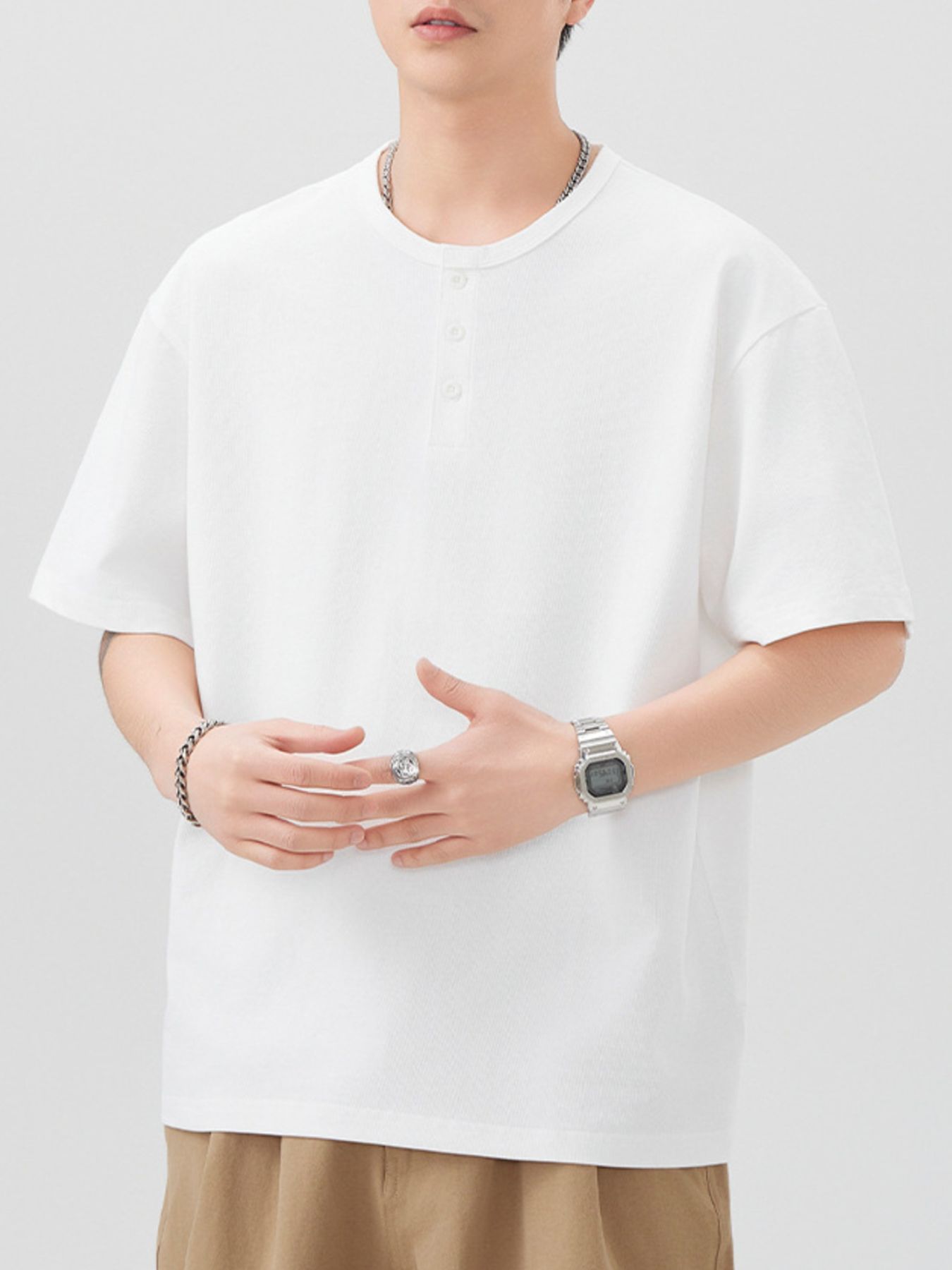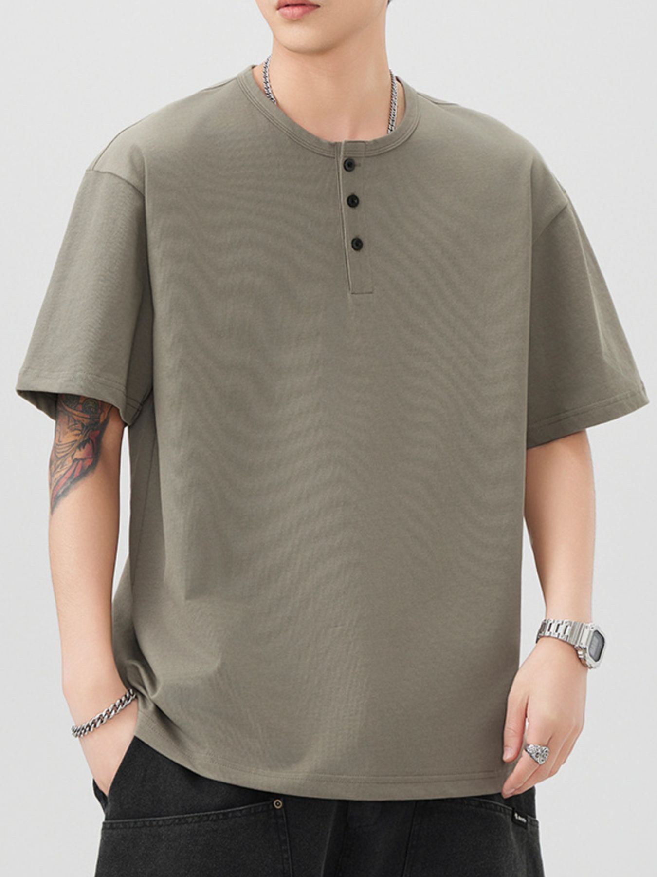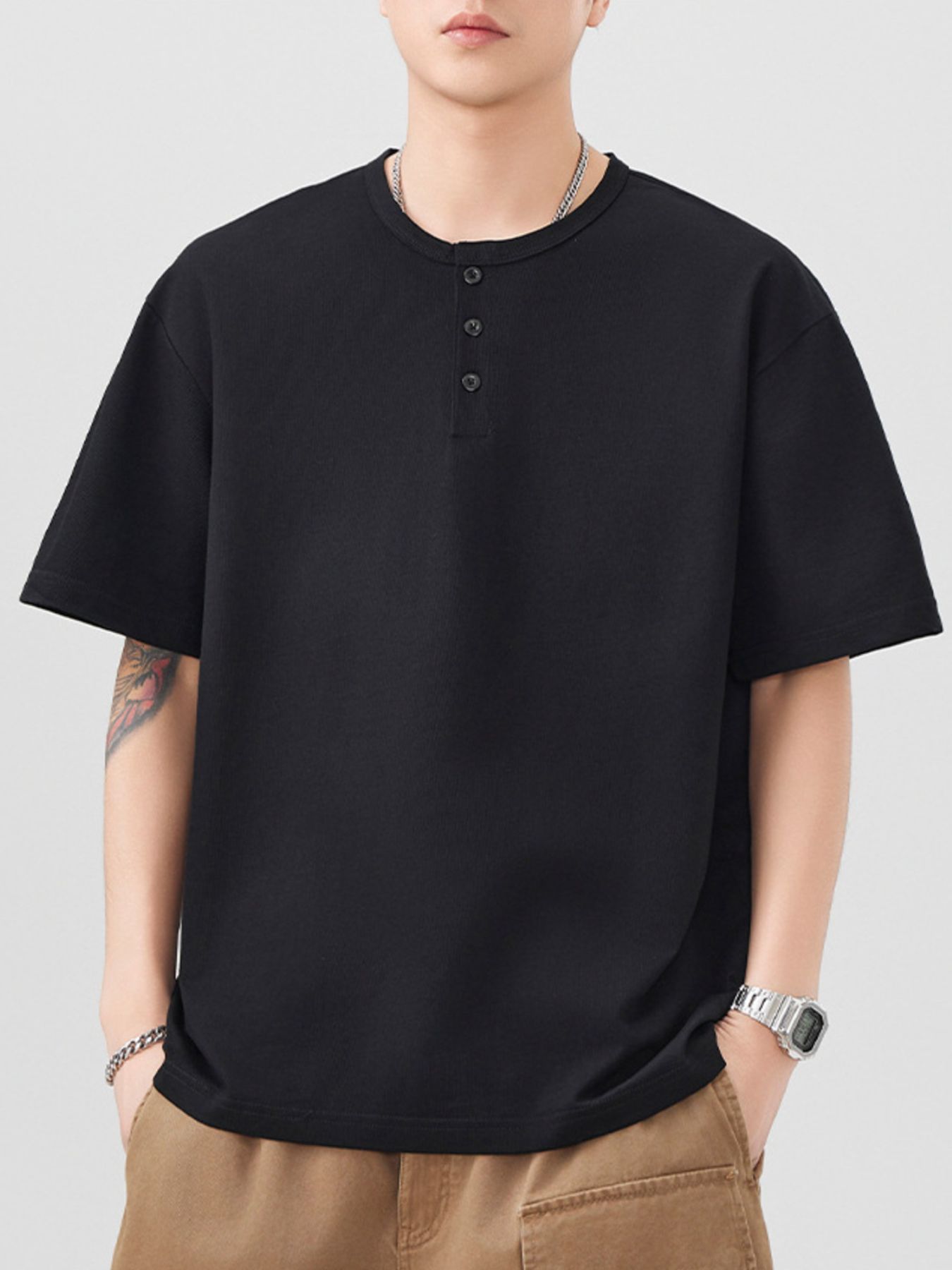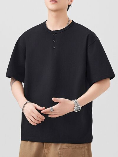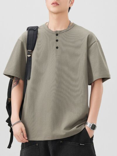 Men's Plus Size Button Detail Short Sleeve T-Shirt