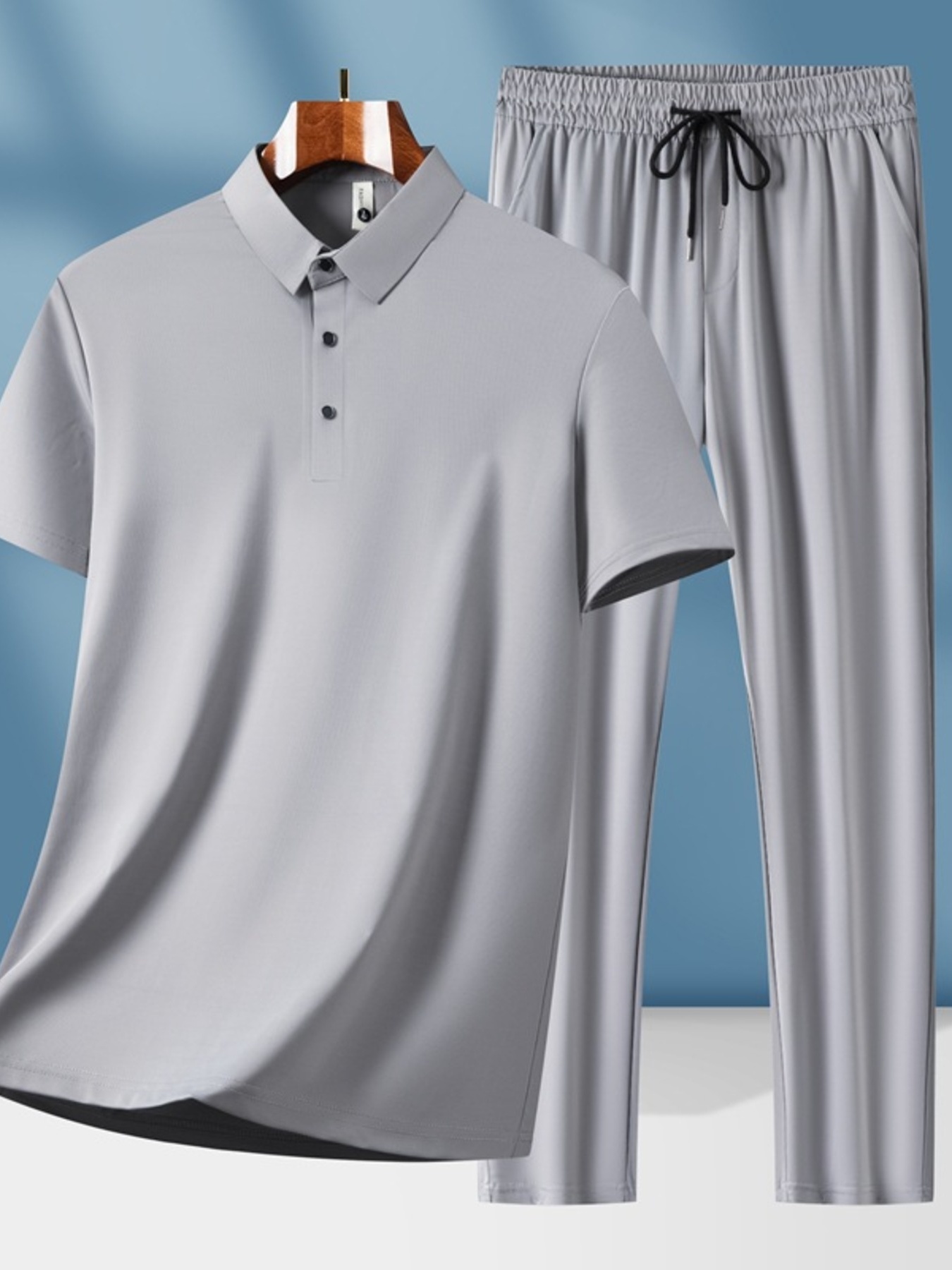 Men's Plus Size Button Detail Short Sleeve Top and Pants Set