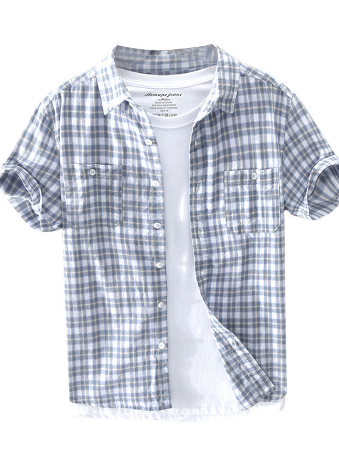 Men's Plus Size Button Down Plaid Short Sleeve Shirt