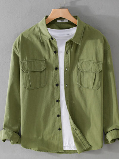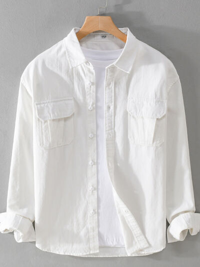 Men's Plus Size Button Down Shirt with Dual Chest Pockets