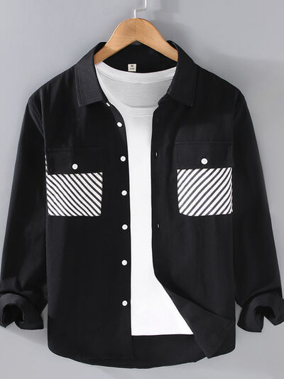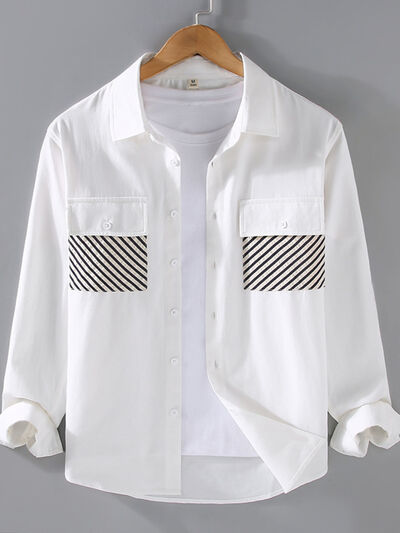 Men's Plus Size Button-Down Shirt with Striped Pocket Detail