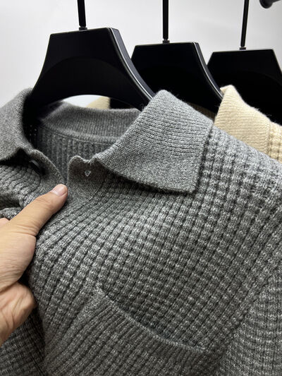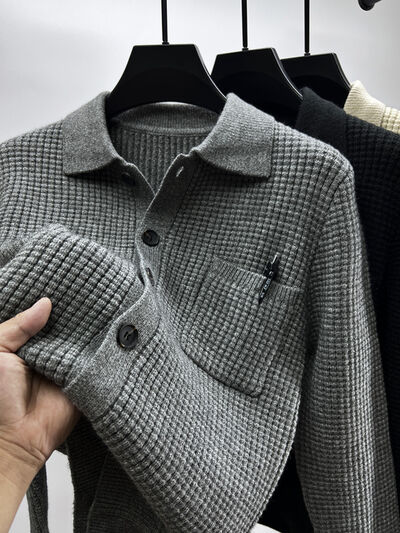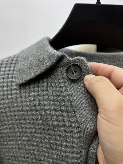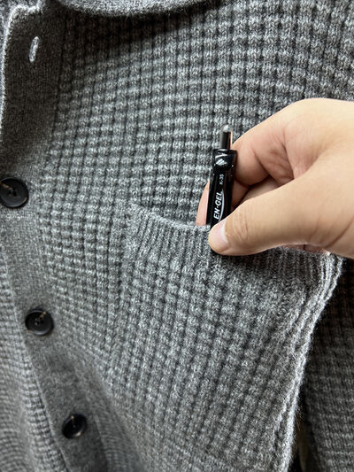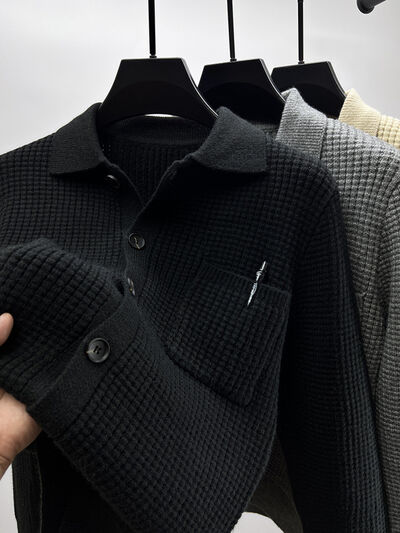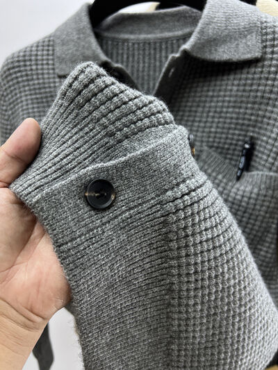 Men's Plus Size Button-Front Knit Cardigan with Collar