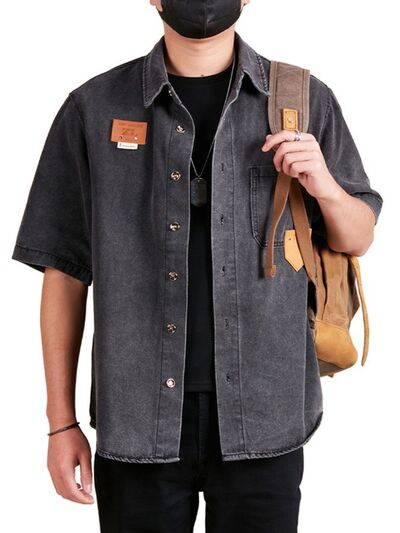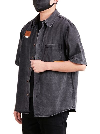 Men's Plus Size Button Up Half Sleeve Denim Shirt