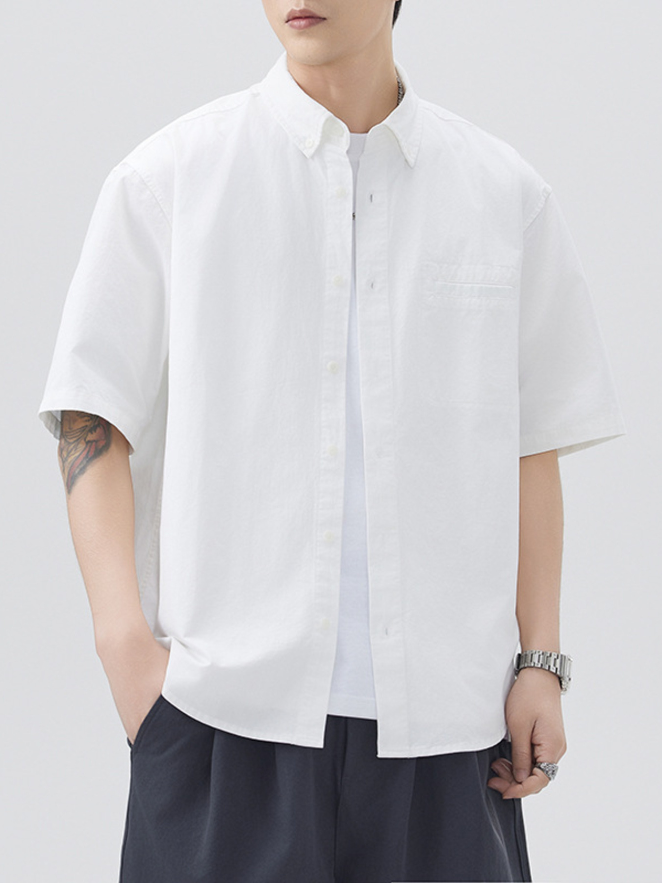 Men's Plus Size Button Up Half Sleeve Shirt