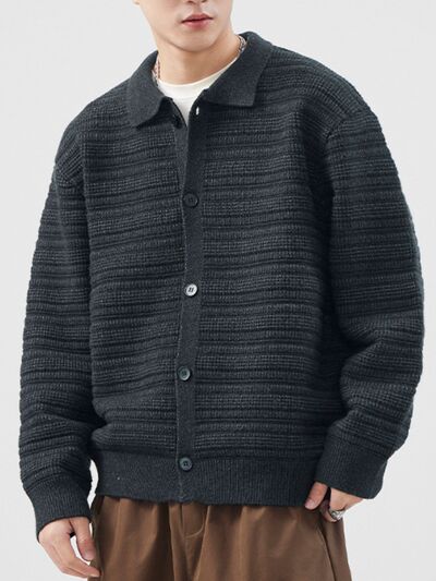 Men's Plus Size Button Up Long Sleeve Cardigan