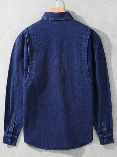 Men's Plus Size Button Up Long Sleeve Denim Shirt