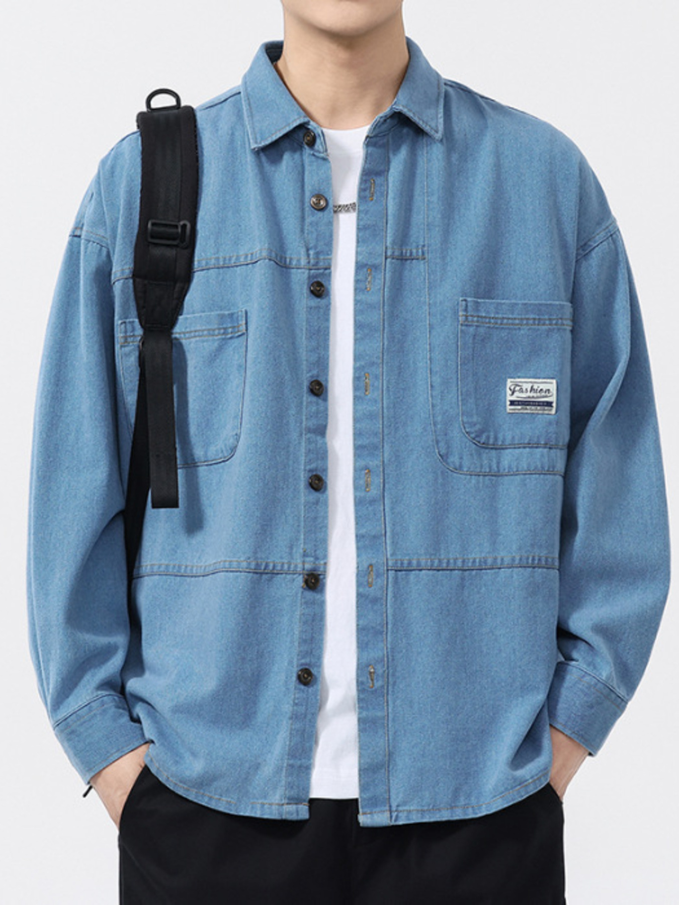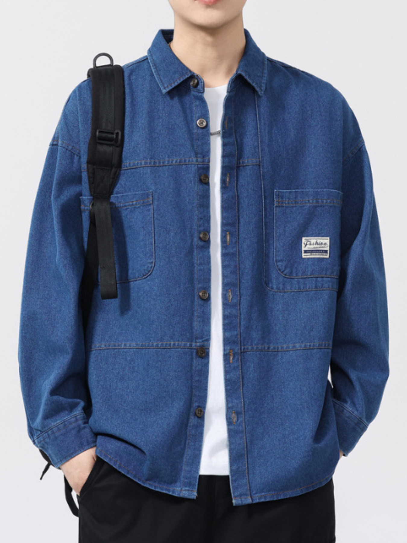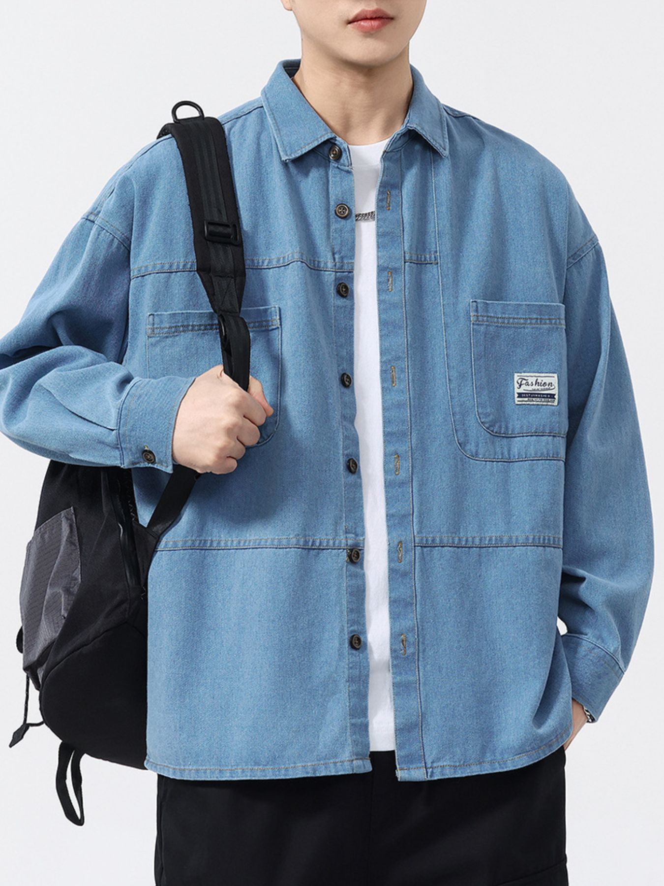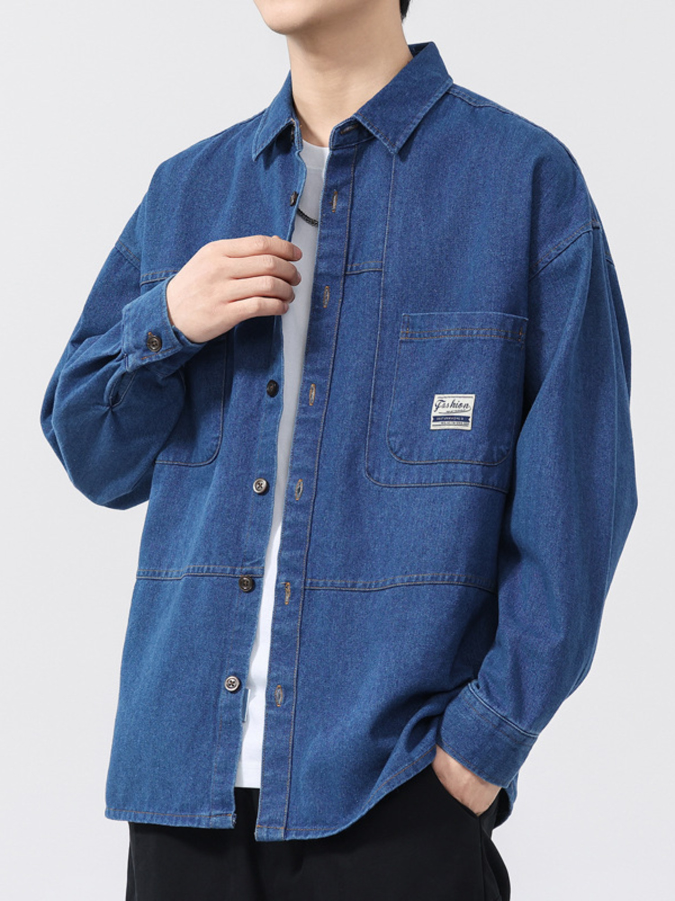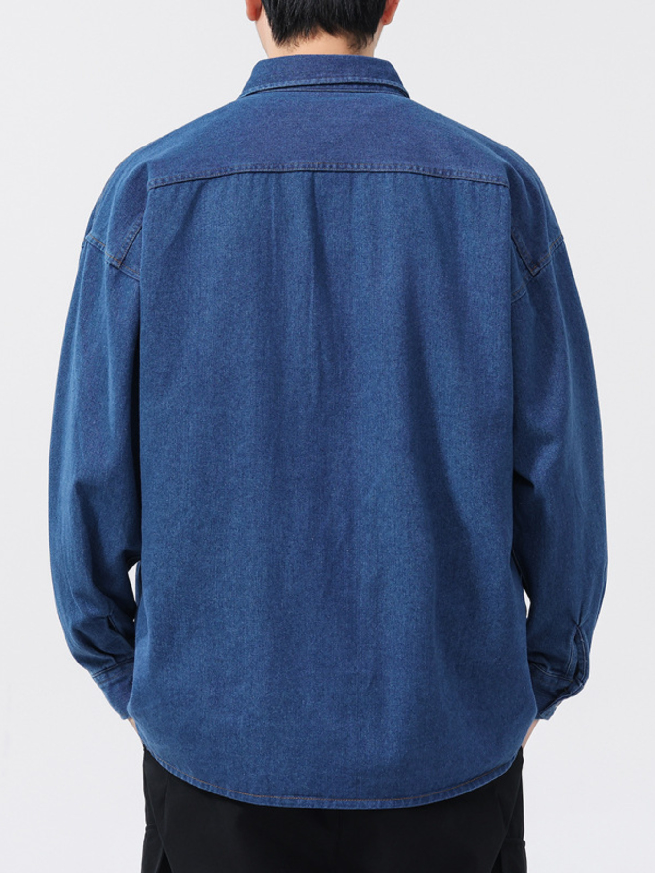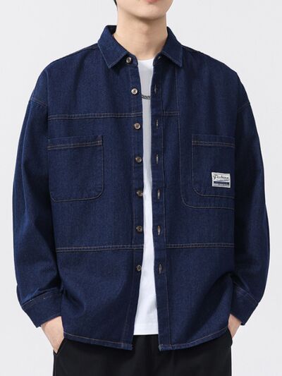 Men's Plus Size Button Up Long Sleeve Denim Shirt