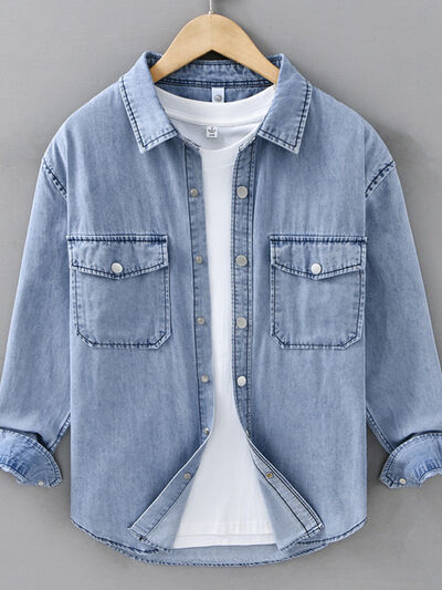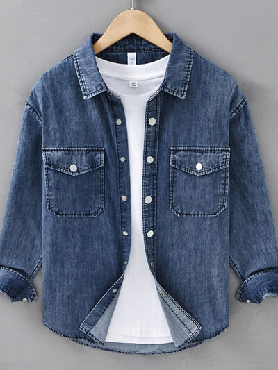 Men's Plus Size Button Up Long Sleeve Denim Shirt
