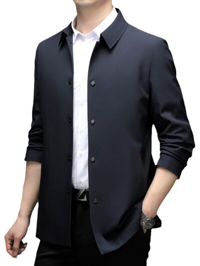 Men's Plus Size Button Up Long Sleeve Jacket