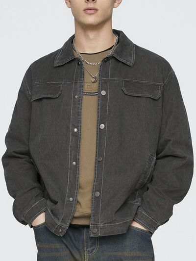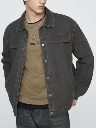 Men's Plus Size Button Up Long Sleeve Jacket