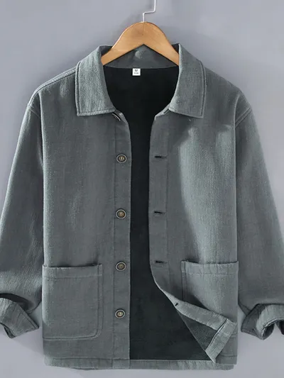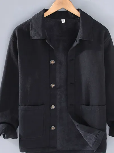 Men's Plus Size Button Up Long Sleeve Shacket