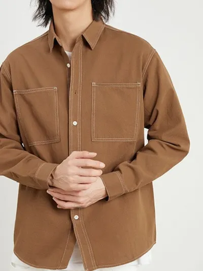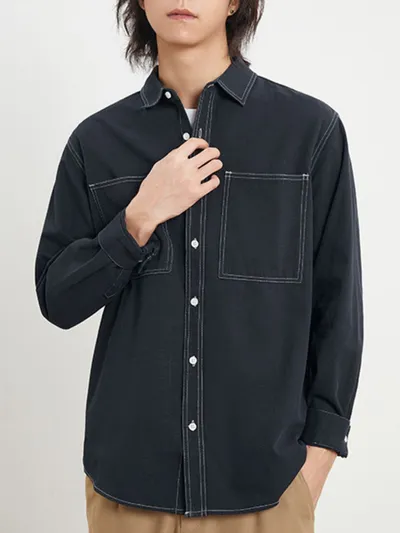 Features:Buttoned,Contrast Stitching