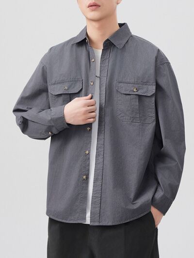 Men's Plus Size Button Up Long Sleeve Shirt