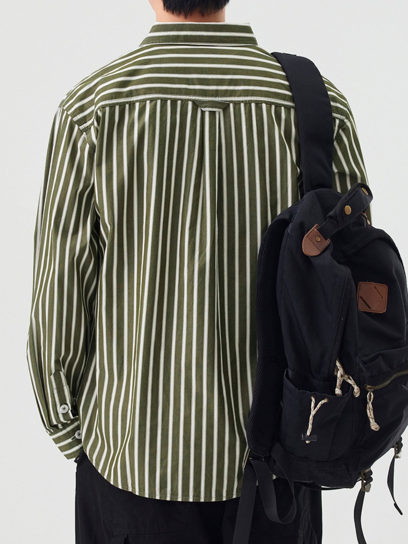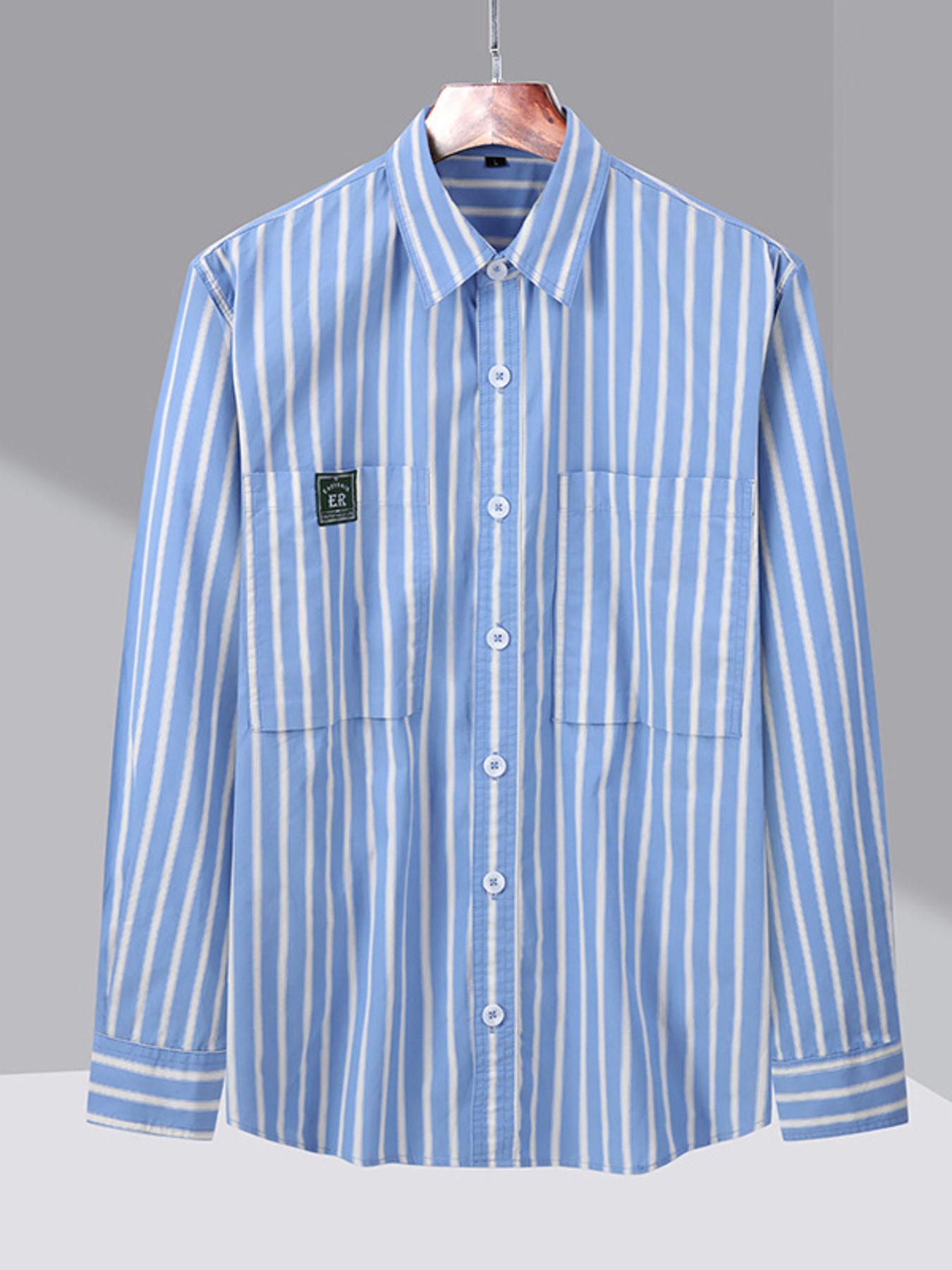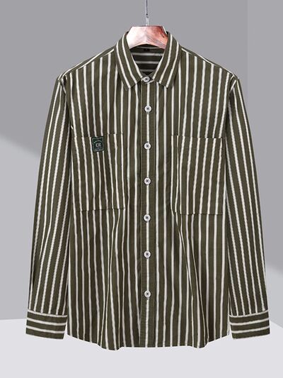 Men's Plus Size Button Up Long Sleeve Striped Shirt