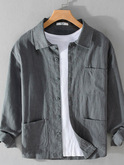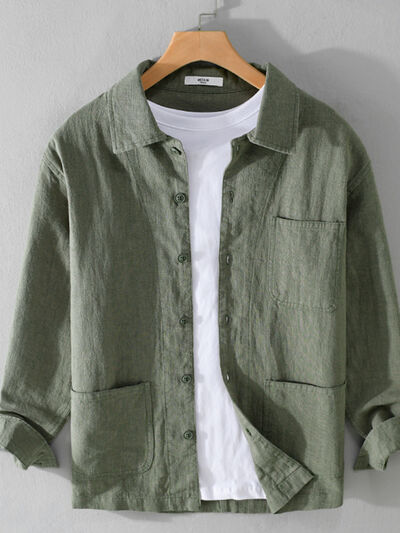 Men's Plus Size Button-Up Shirt with Chest Pocket