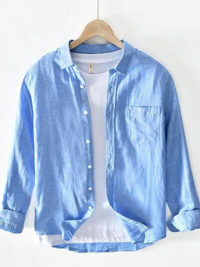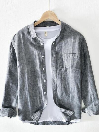 Men's Plus Size Button-Up Shirt with Chest Pocket