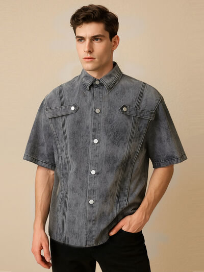 Men's Plus Size Button Up Short Sleeve Denim Shirt