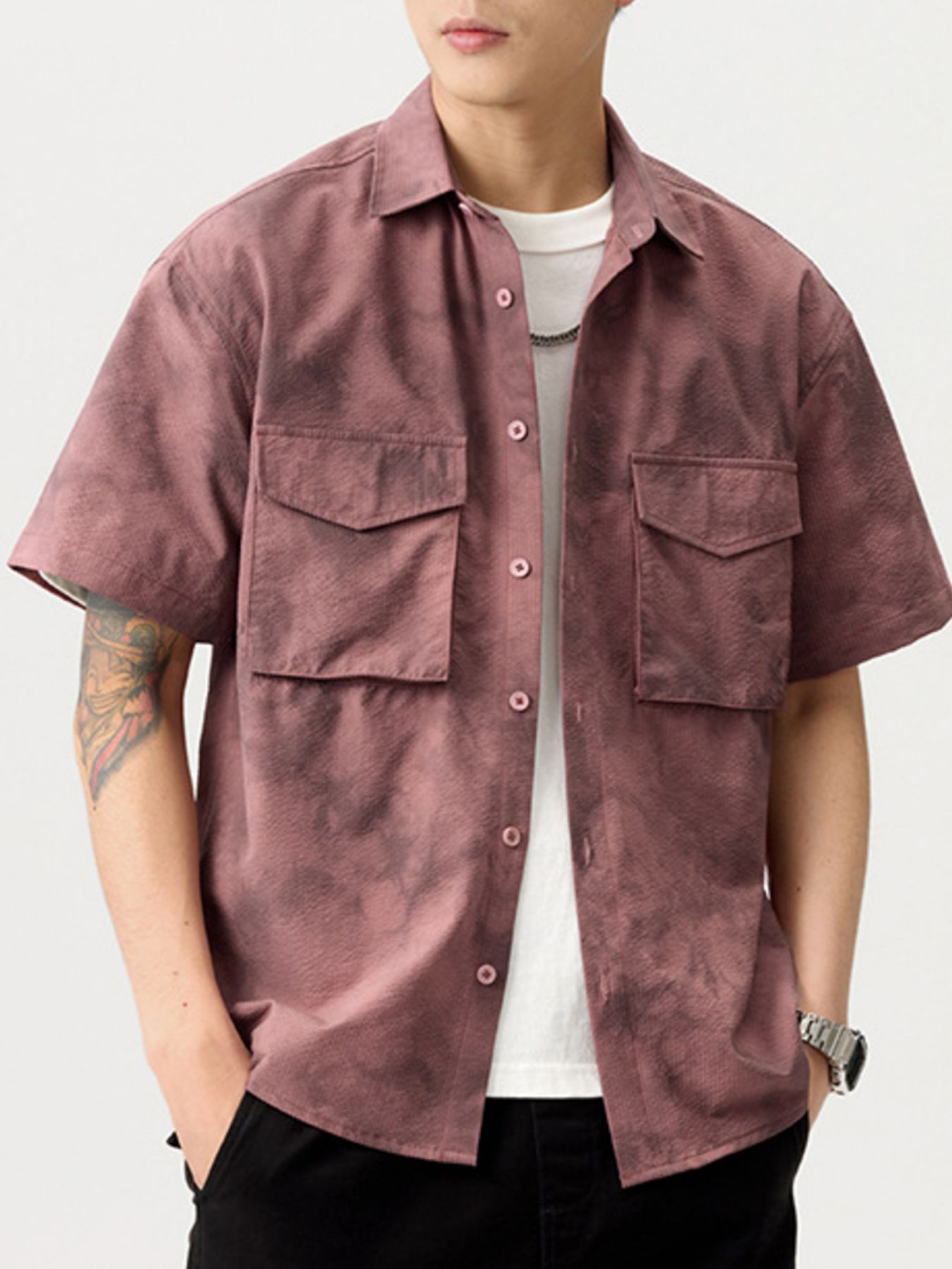 Men's Plus Size Button Up Short Sleeve Shirt